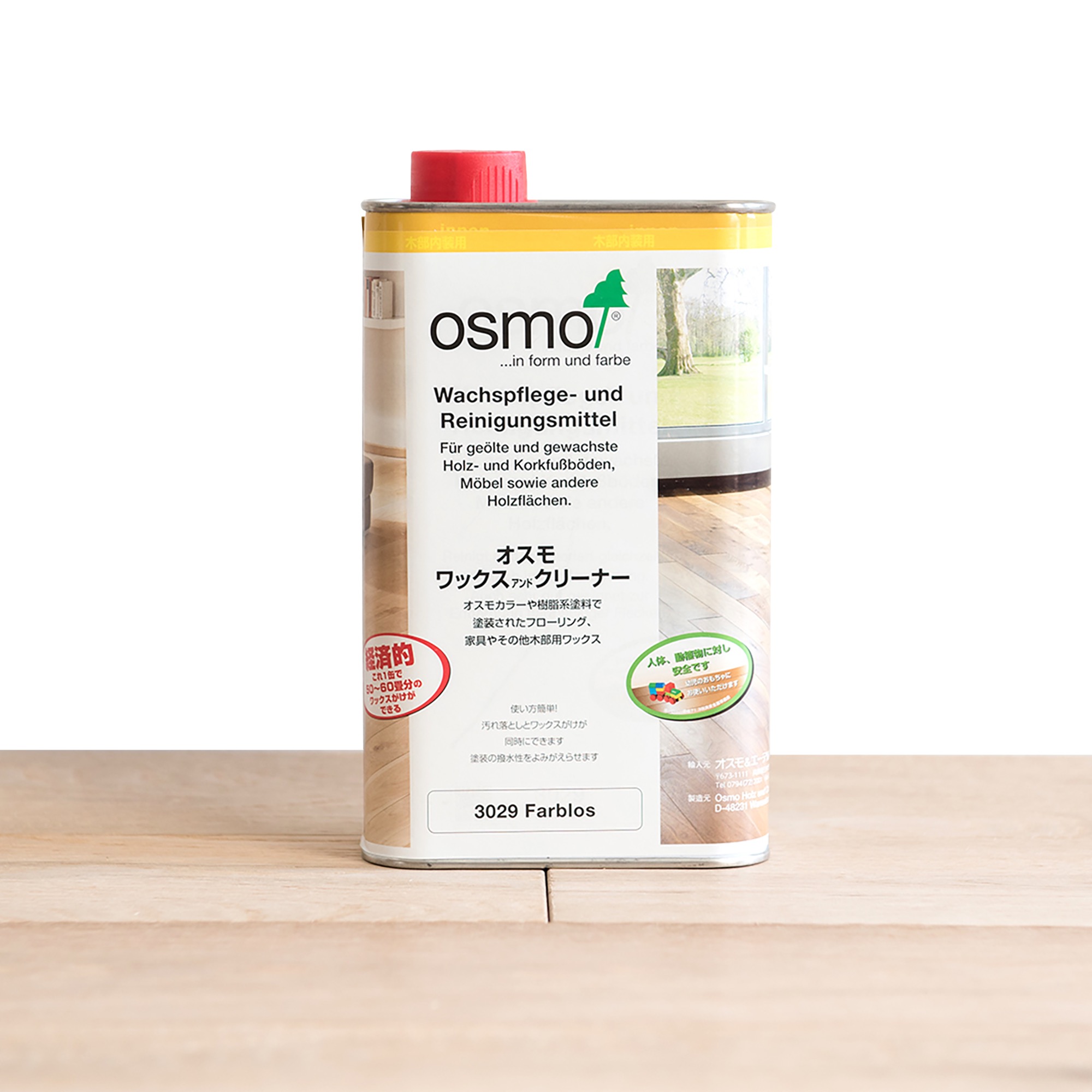 この液剤を固く絞った雑巾などで拭くだけで、油汚れやインクなどの頑固な汚れ落としと、ワックスがけを一度に行えます。定期的なお手入れにちょうどいい、そんなアイテム。