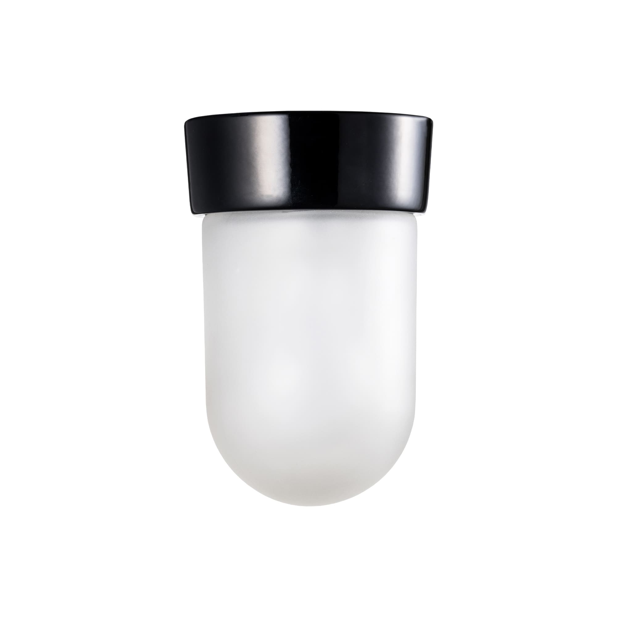 カプセルのような細長いガラスグローブをまとった、普遍的でシンプルな形状。主張をせず、空間に溶け込む脇役に徹したデザインの直付け照明です。