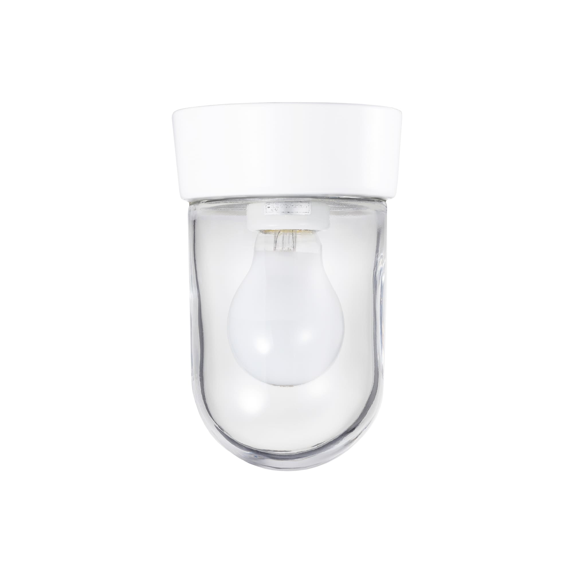 カプセルのような細長いガラスグローブをまとった、普遍的でシンプルな形状。主張をせず、空間に溶け込む脇役に徹したデザインの直付け照明です。