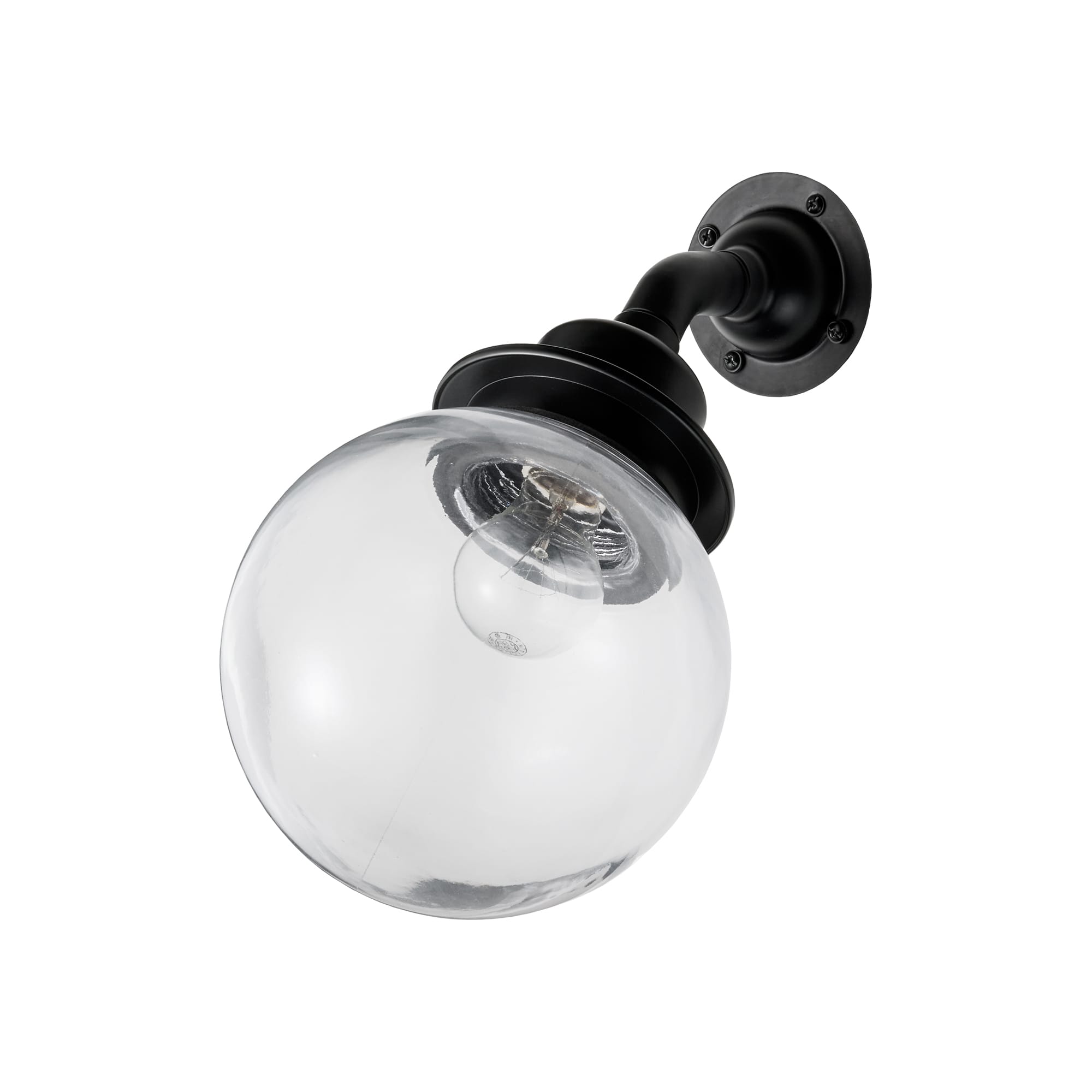 こちらはすっきりとしたクリアガラスのグローブに、ブラックのアームとの組み合わせ。電球が見えるので組み合わせる電球を楽しむのがおすすめ。