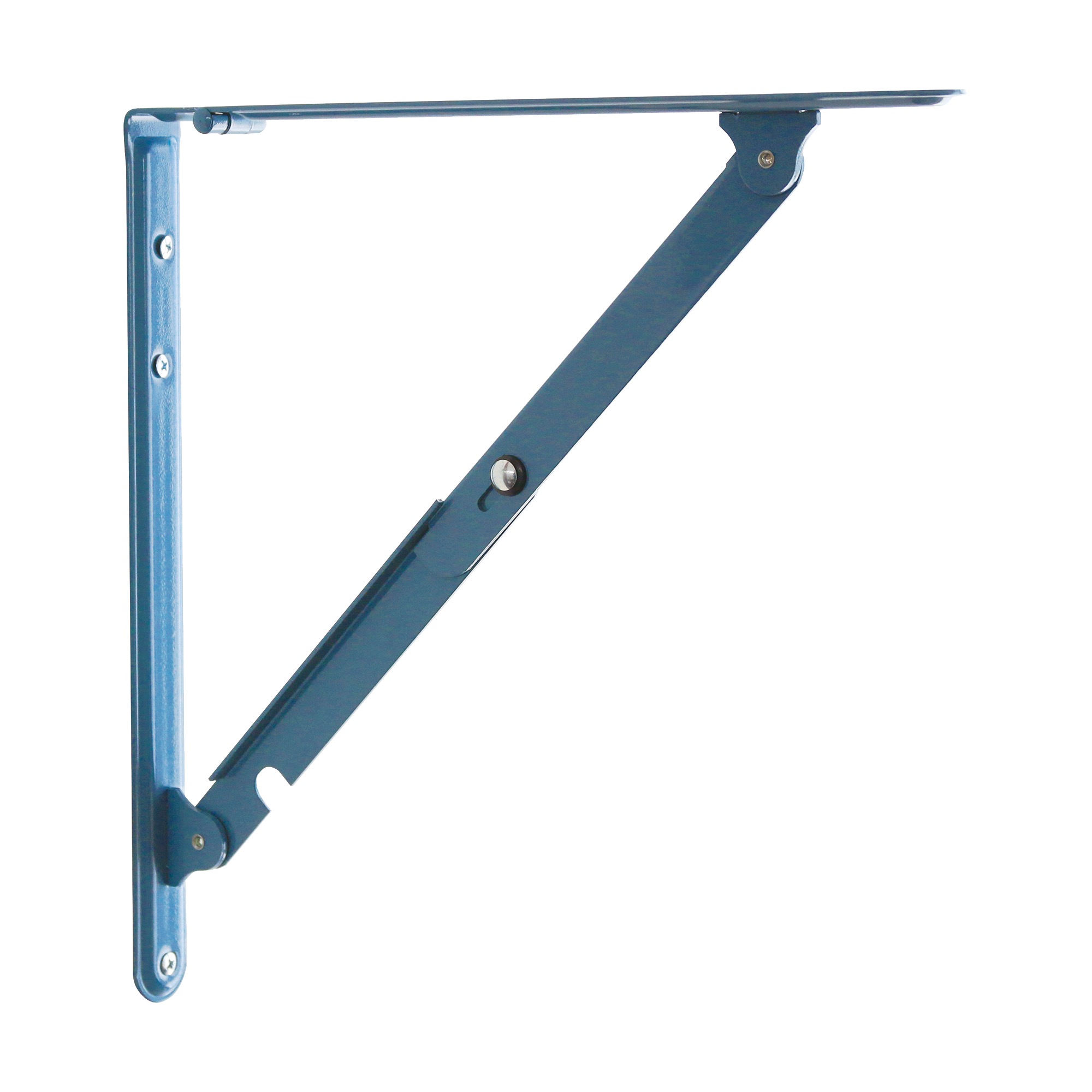 鋼板を成形して作られたこの棚受け、実は、棚板を付けたまま折りたたむことができるんです。男心をくすぐるようなメカニックな姿かたちが特長。