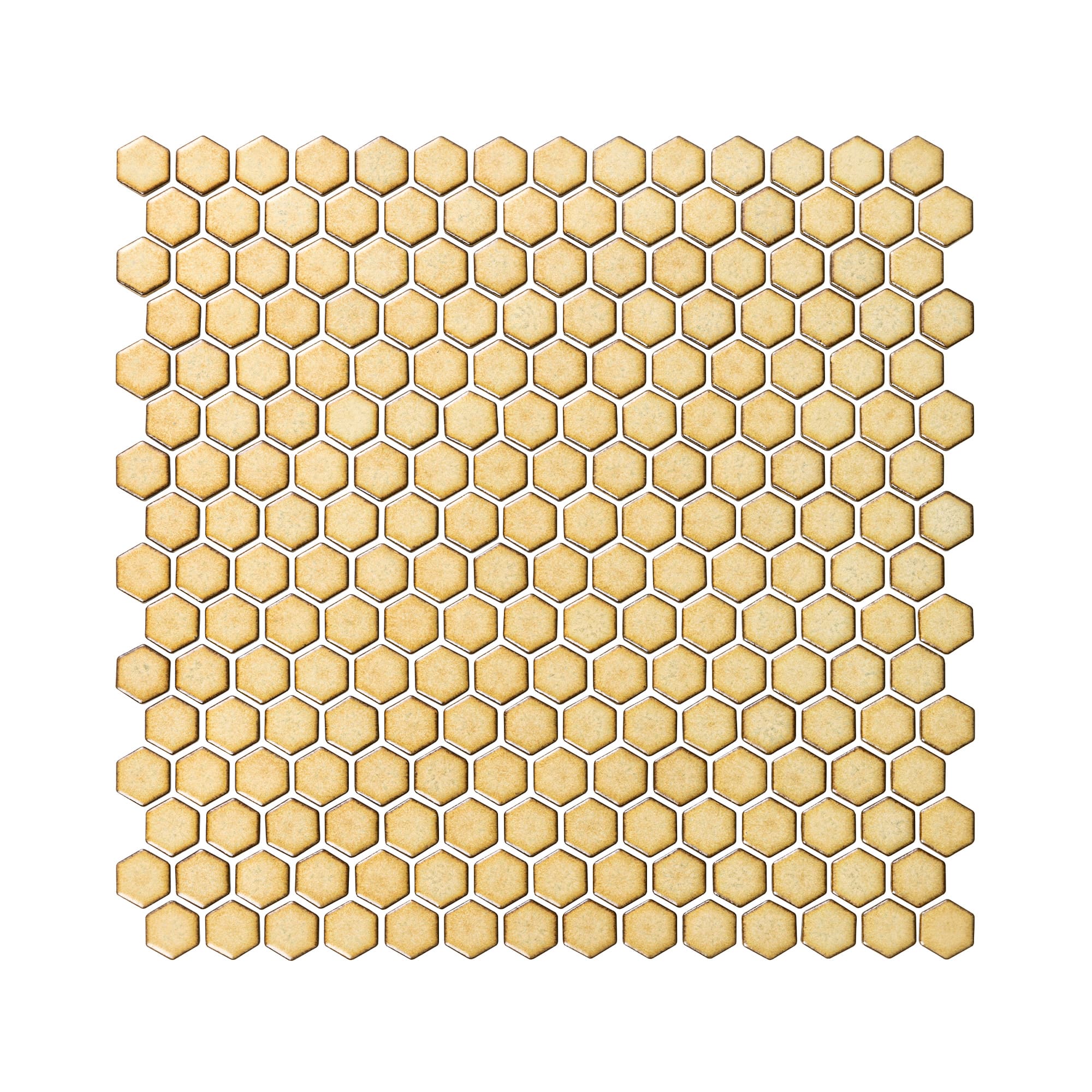 窯変の味わいを活かした六角形のモザイクタイルです。サブレーの淡い焼き加減を思わせる質感。