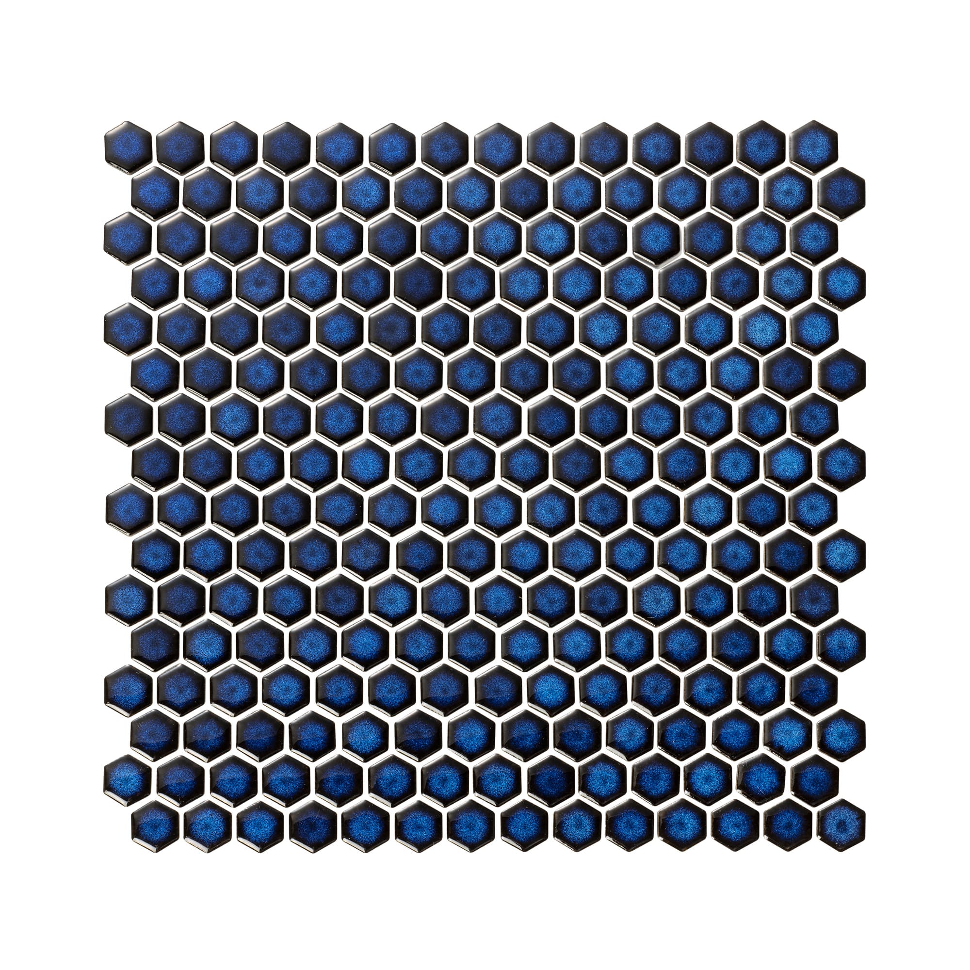 窯変の味わいを活かした六角形のモザイクタイルです。釉薬のムラが奥行きを感じさせる、コバルトブルーのツヤありタイル。