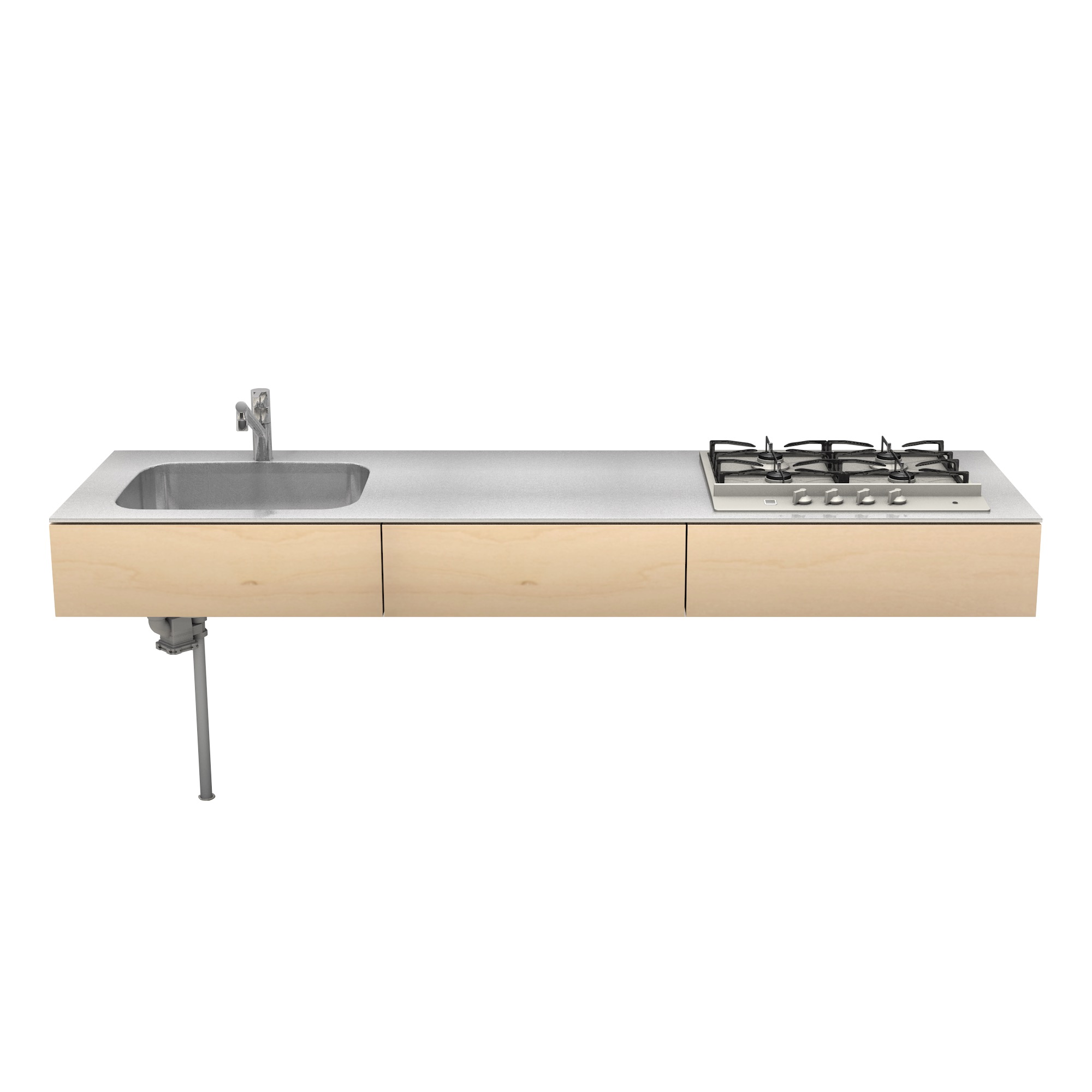 面材の素材違いで「ラワン」と「バーチ」もあります。また他にも、オールステンレス製の「ミニマルキッチン」や、日常生活に溶け込むような「ホワイトミニマルキッチン」もご用意していますので、あわせてご検討ください。