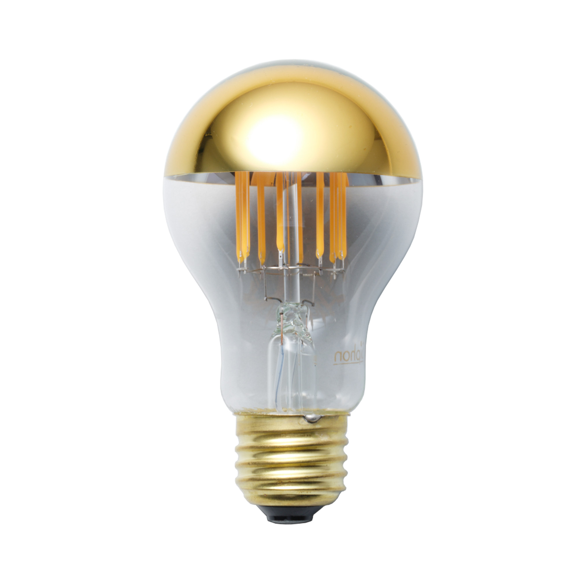 こちらは直径60mmのいわゆる一般的な電球の形をした、ミラー部分がゴールドのタイプ。2200Kと比べて赤みが抑えられた光の色味が特徴の「2700K」は、実用性に優れているのでリビングやダイニングなどにおすすめ。