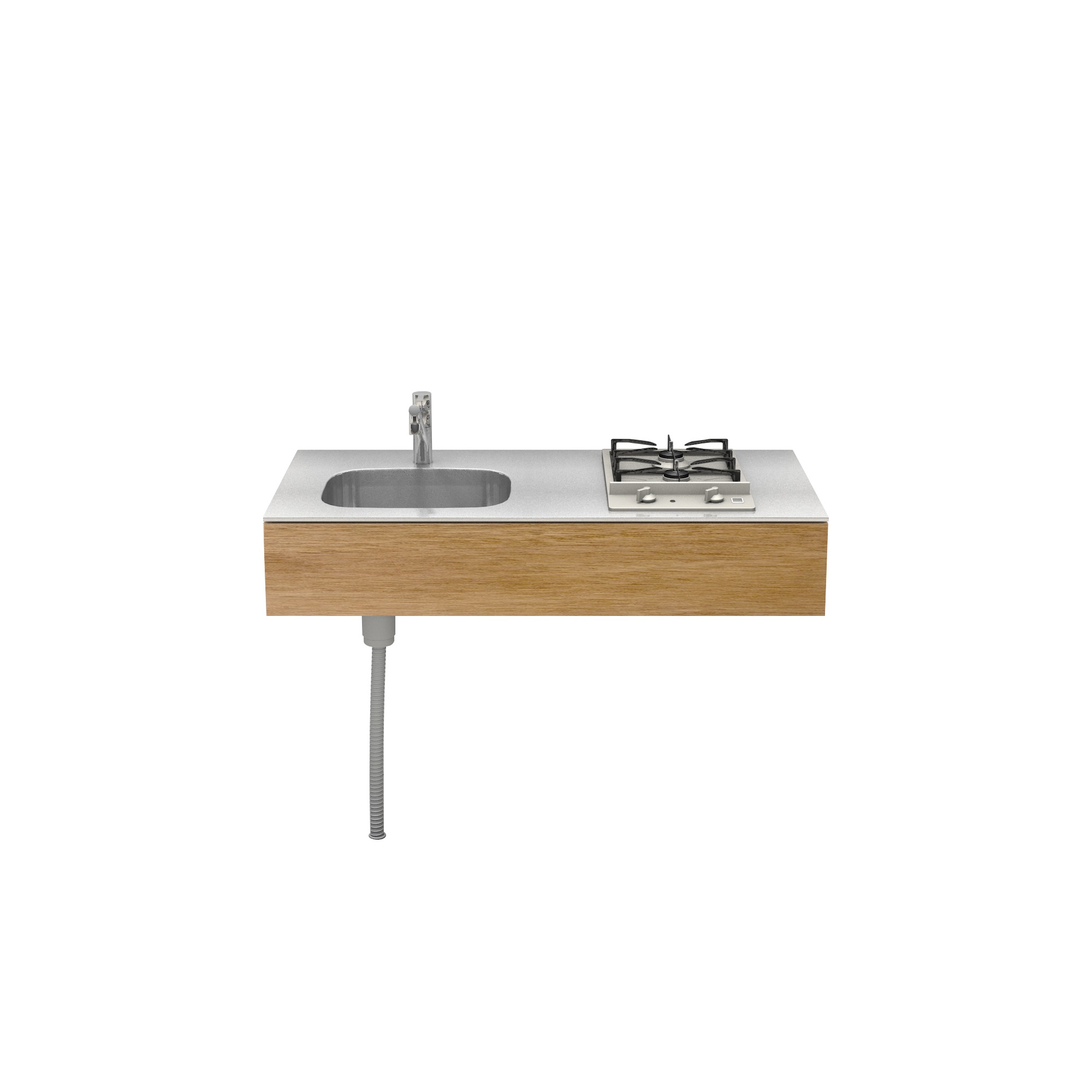 面材の素材違いで「シナ」と「バーチ」もあります。また他にも、オールステンレス製の「ミニマルキッチン」や、日常生活に溶け込むような「ホワイトミニマルキッチン」もご用意していますので、あわせてご検討ください。