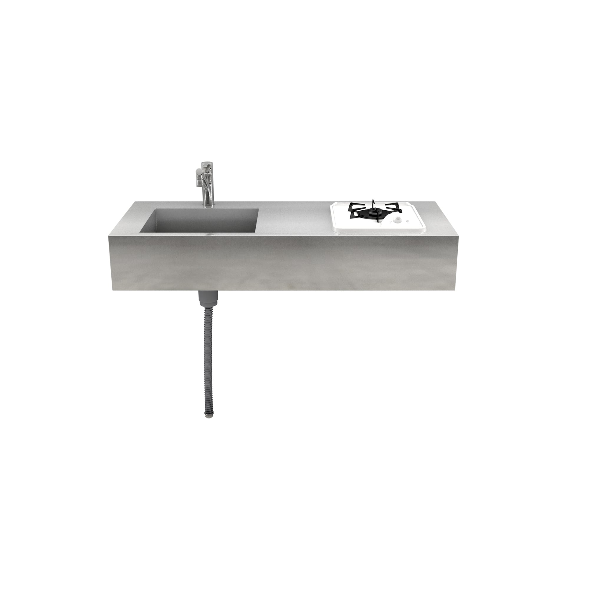 こちらはオールステンレス製ですが、他にも日常生活に溶け込むような「ホワイトミニマルキッチン」や、木のあたたかみを感じられる「木製ミニマルキッチン」もご用意していますので、あわせてご検討ください。