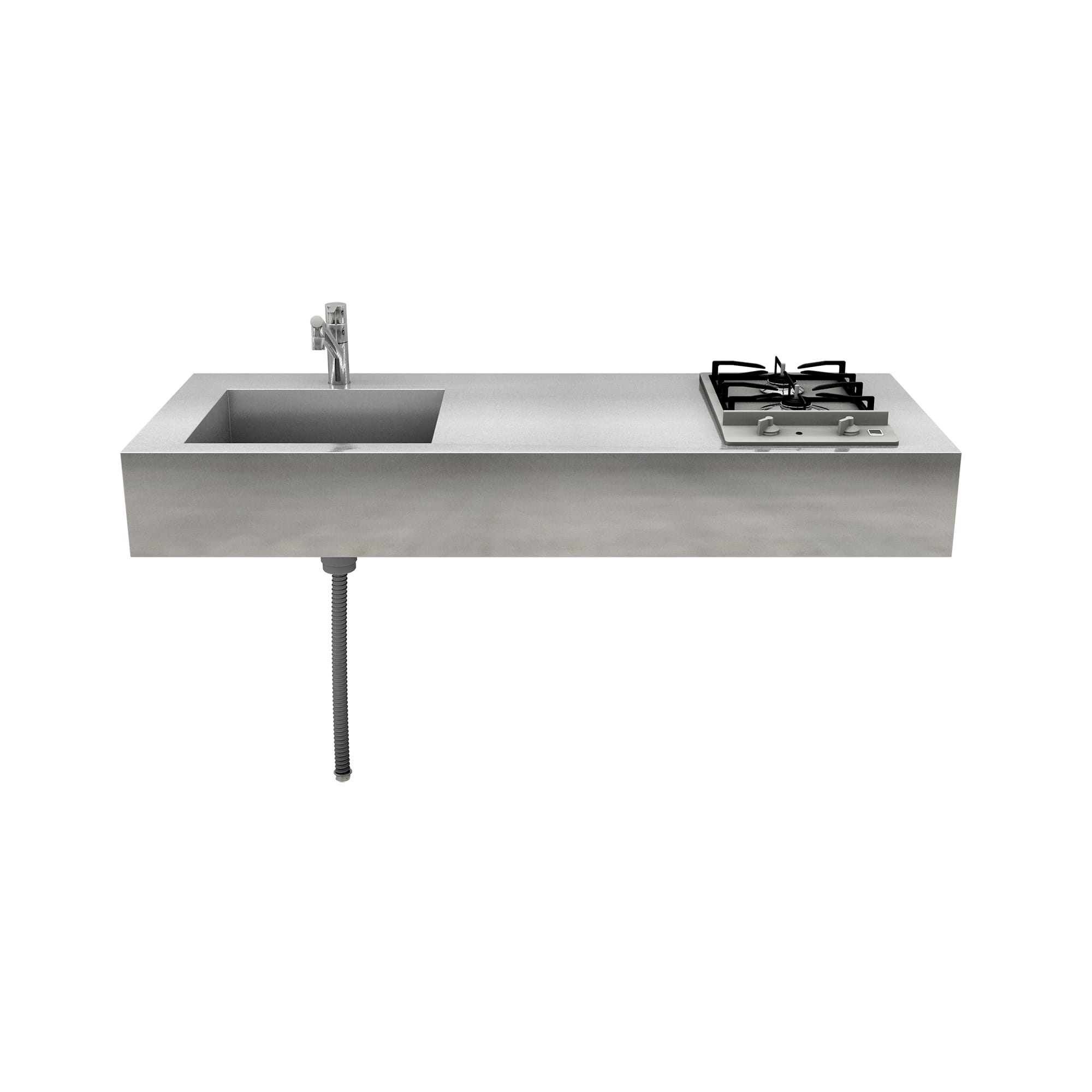 こちらはオールステンレス製ですが、他にも日常生活に溶け込むような「ホワイトミニマルキッチン」や、木のあたたかみを感じられる「木製ミニマルキッチン」もご用意していますので、あわせてご検討ください。
