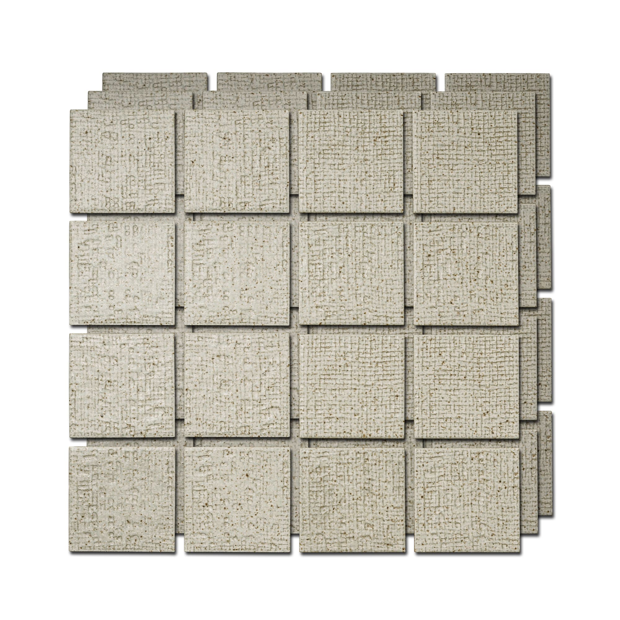 | サイズ | タイルサイズ:W69×H69mm シートサイズ:W300×H300mm(片目地込み, 16枚) 厚さ:T7.5mm 目地幅:6mm |