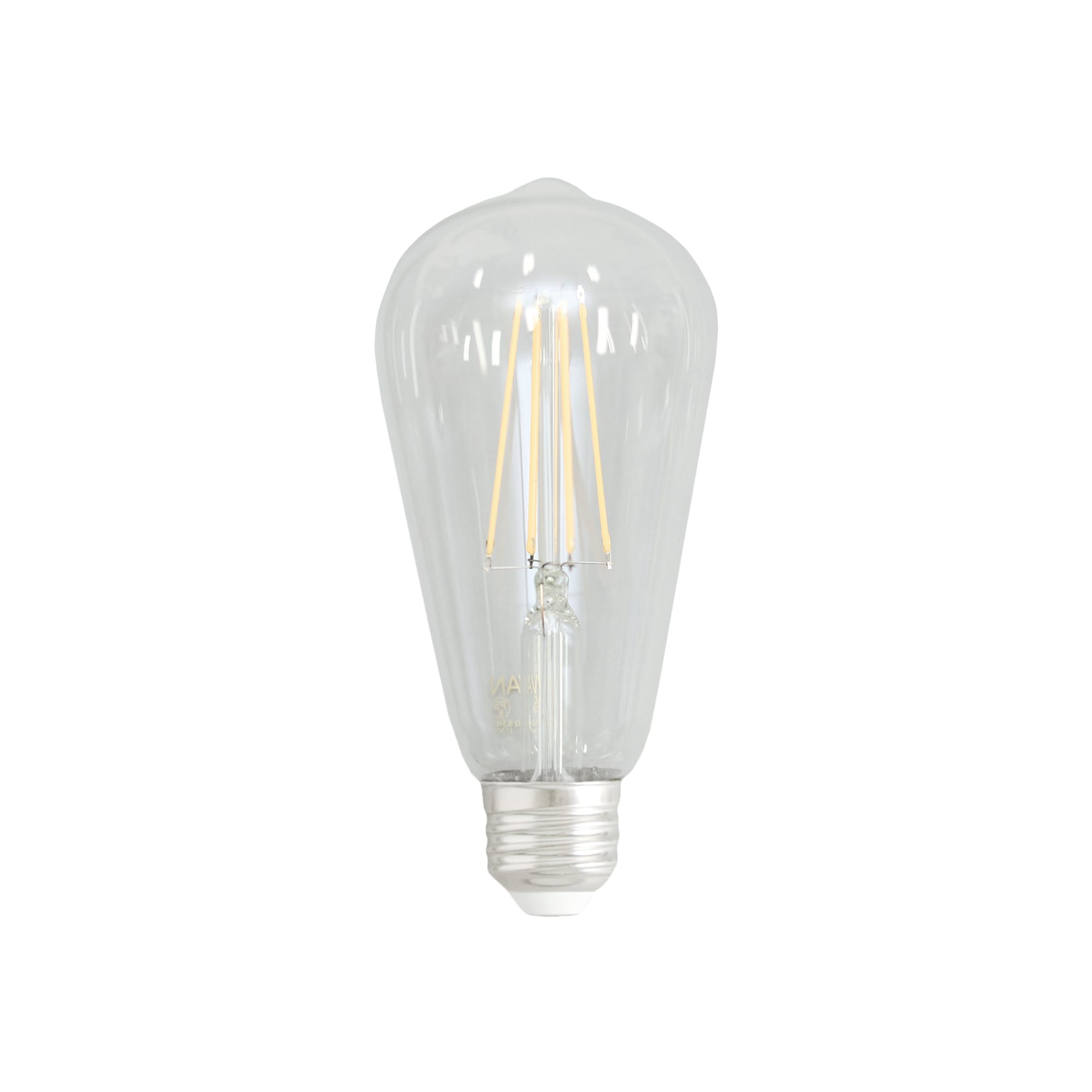 こちらは、口金サイズが「E26」のビンテージ感溢れるシルエットのエジソン型。透明のガラスグローブに、赤みが抑えられた色味の光を放つので、見た目と実用性のバランスが取れたLED電球です。白熱電球60W相当の明るさというのも嬉しいポイント。