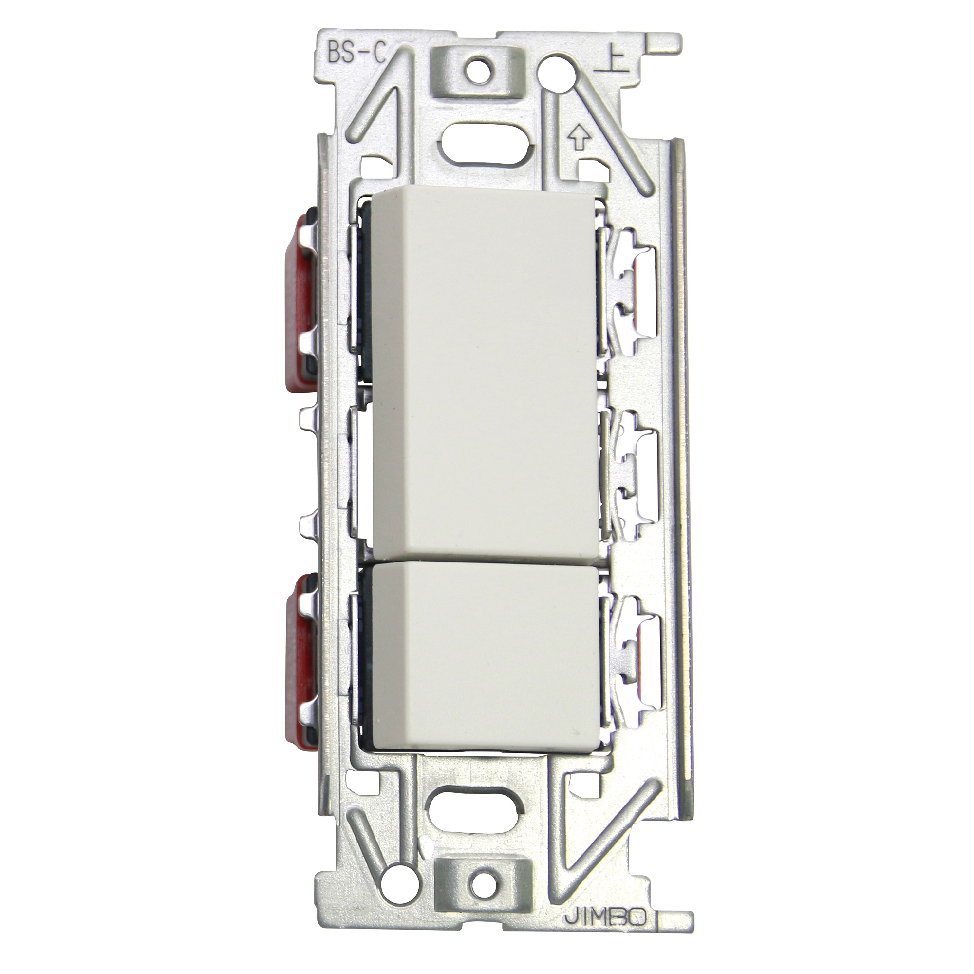 こちらは片切・3路両用のスイッチパーツです。プレートは別売りなので、好みの素材のプレートと組み合わせてお使いください。