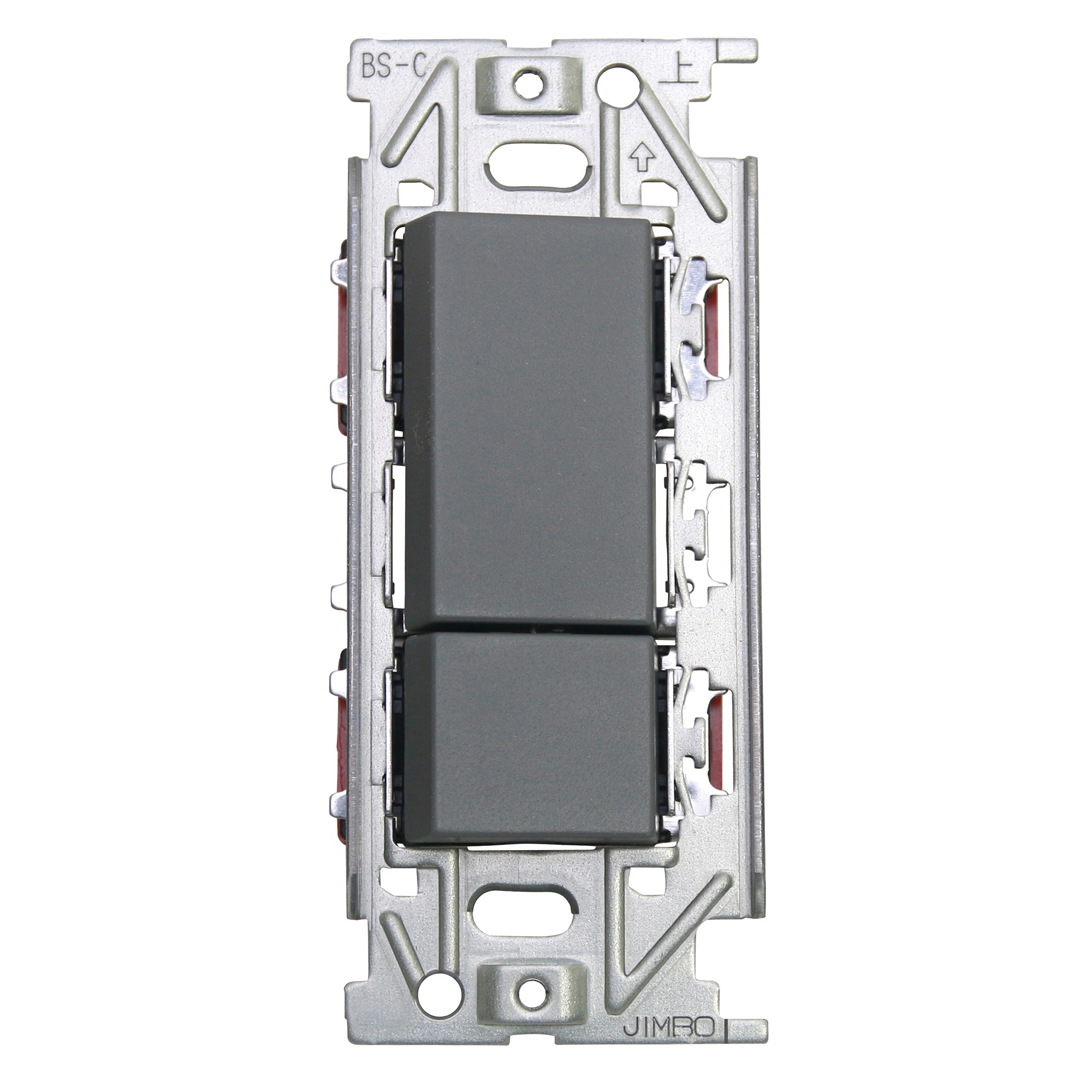こちらは片切・3路両用のスイッチパーツです。プレートは別売りなので、好みの素材のプレートと組み合わせてお使いください。