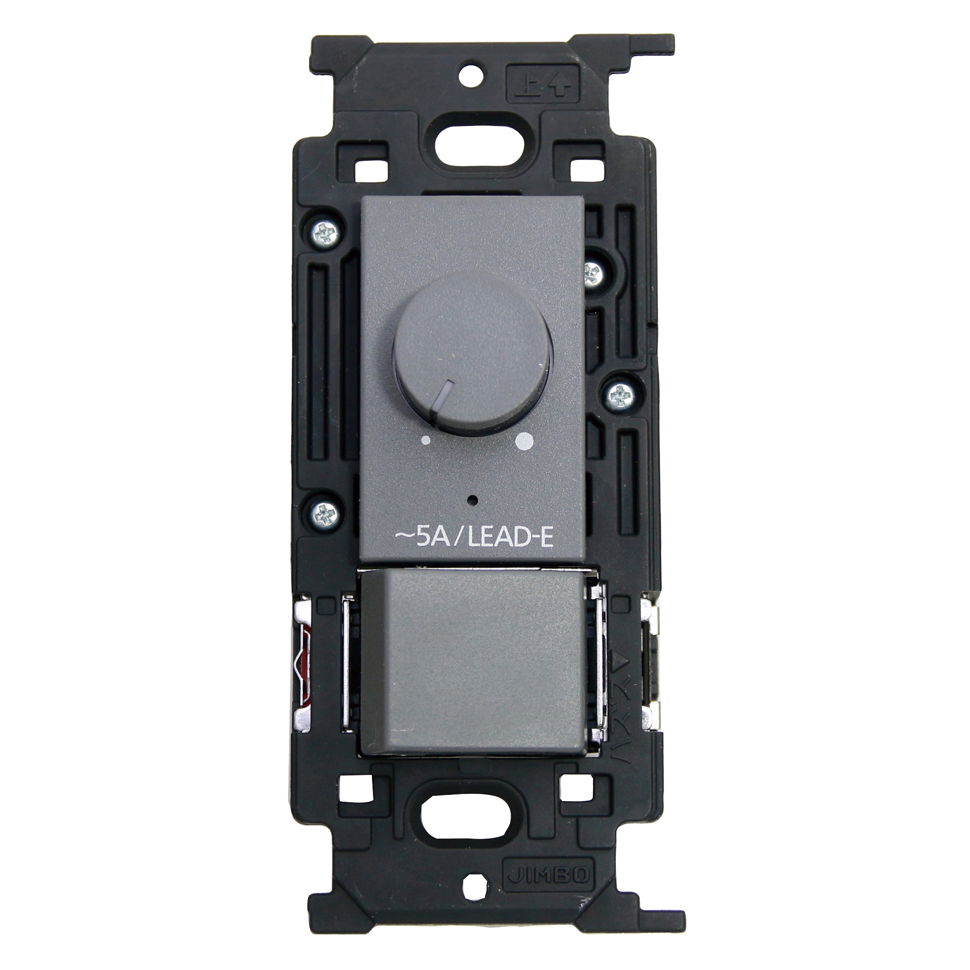 こちらは調光機能が付いた片切・3路両用のスイッチパーツです。プレートは別売りなので、好みの素材のプレートと組み合わせてお使いください。