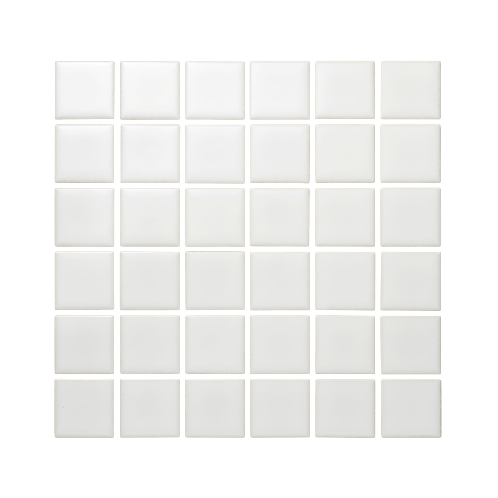 | サイズ | タイルサイズ:W46.5×H46.5mm シートサイズ:W300×H300mm(片目地込み, 36枚) 厚さ:T6.5mm 目地幅:3.5mm |