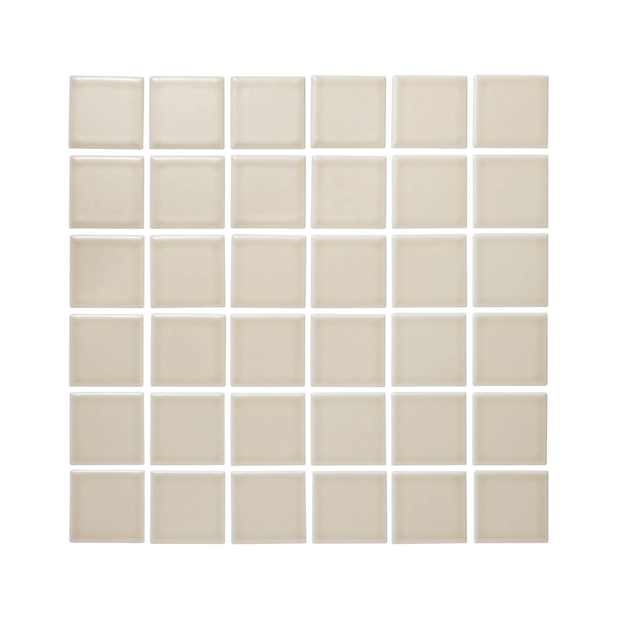 | サイズ | タイルサイズ:W46.5×H46.5mm シートサイズ:W300×H300mm(片目地込み, 36枚) 厚さ:T6.5mm 目地幅:3.5mm |