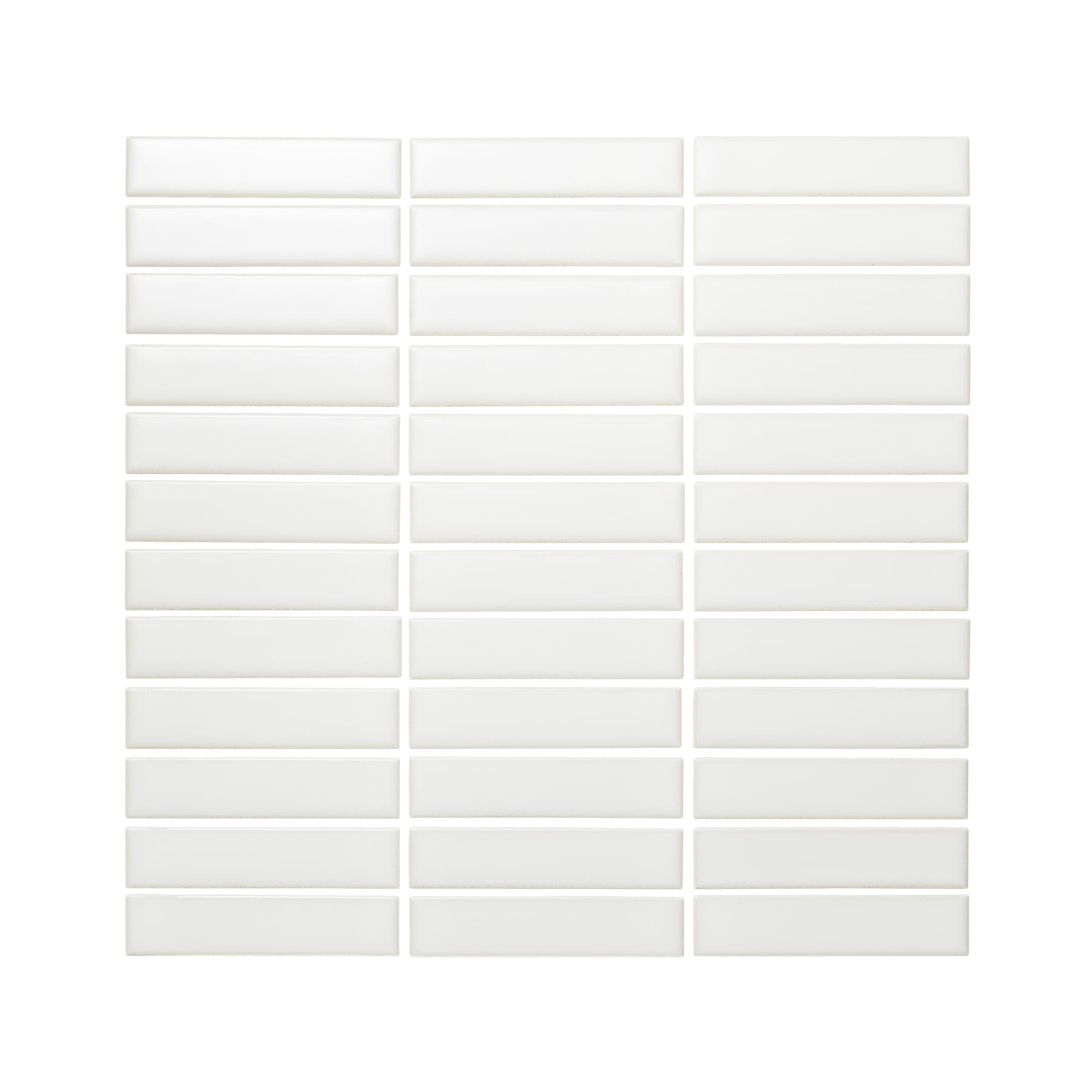 | サイズ | タイルサイズ:W96.5×H22.3mm シートサイズ:W300×H300mm(片目地込み, 36本) 厚さ:T6.5mm 目地幅:W3.5mm / H2.7mm |