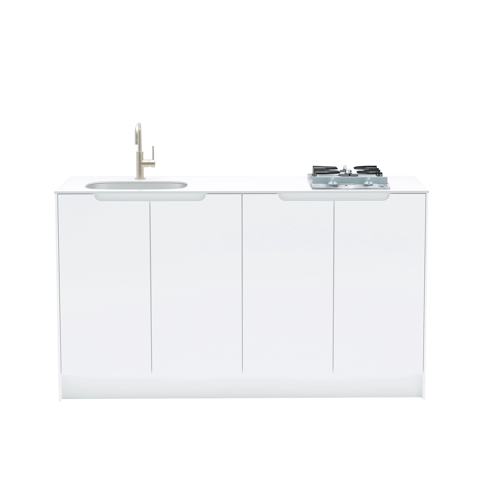 賃貸におすすめな、人工大理石の天板と手掛けのデザインが特徴的な収納力のあるキッチンです。オフィスからワンルームアパート、DINKS向けマンションなど、さまざまなオケージョンで使えるサイズ感。