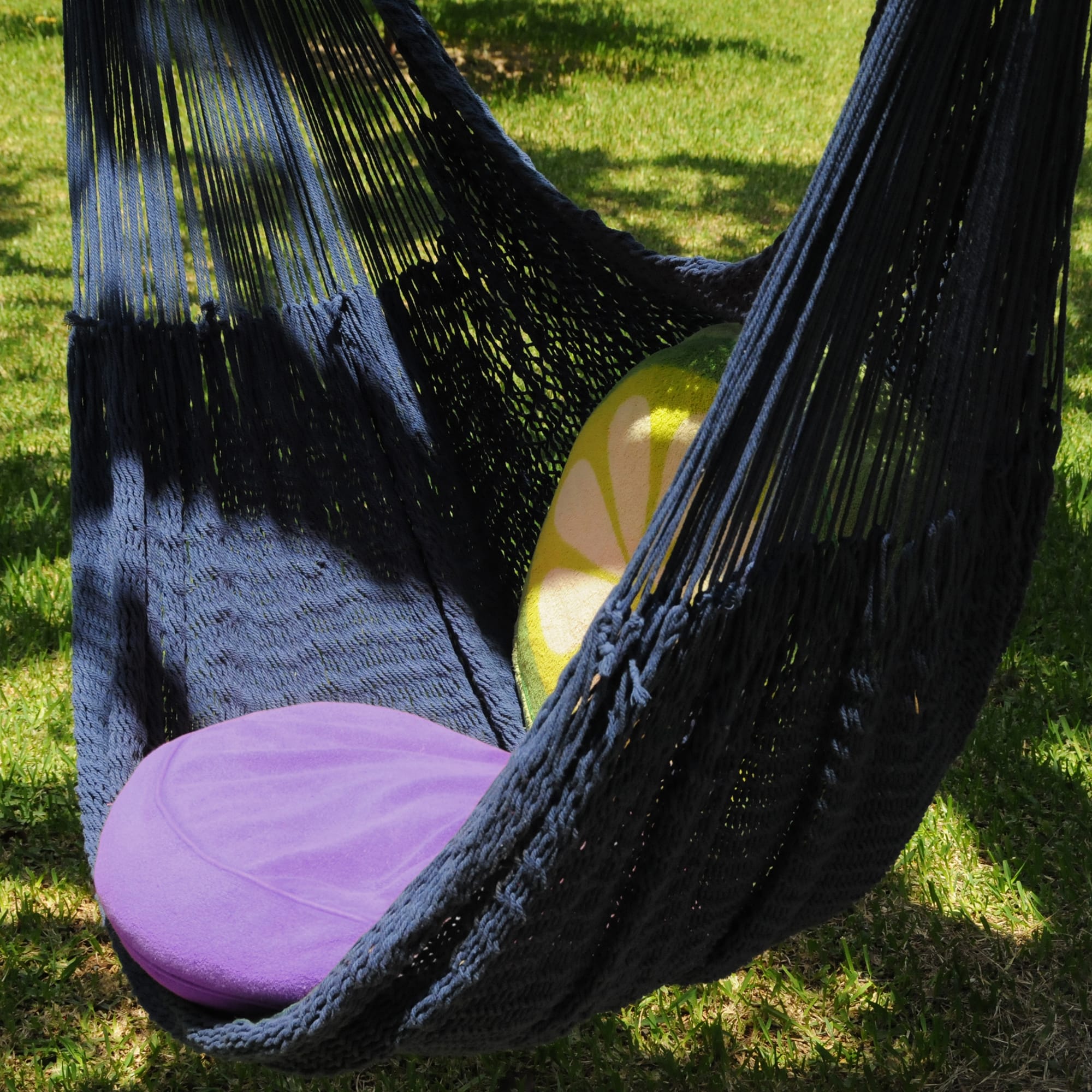 コンパクトで約1㎡の小さなスペースさえあれば設置できるイス型のハンモック。背もたれから座る部分まで、滑らかな曲線になるよう設計されていて、どんな座り方でも心地良くフィットするようにできています。