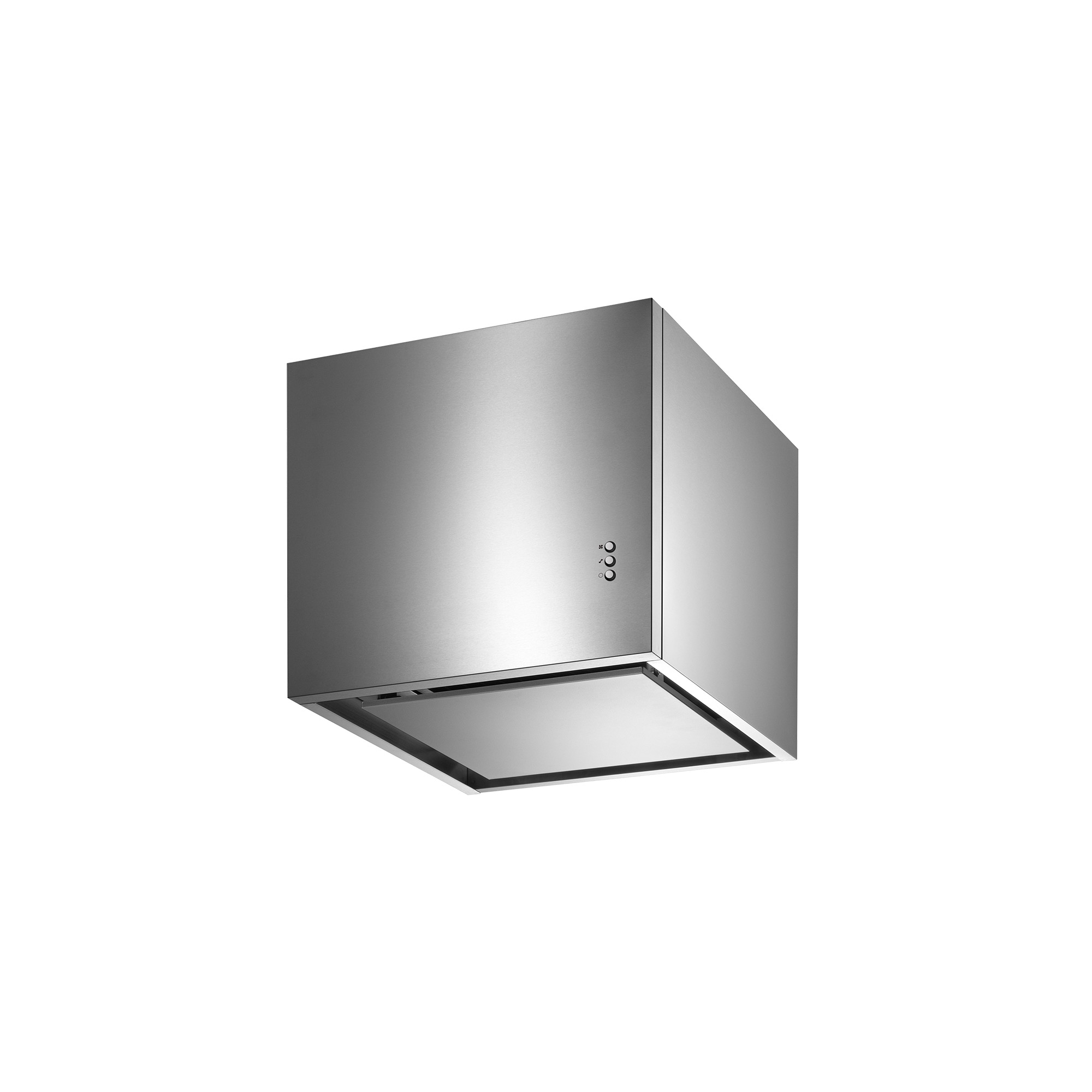 キッチンのレイアウトをすっきりと見せたい方におすすめのキューブ型のレンジフードです。アイランドキッチンなどで、宙に浮かぶようにレンジフードを設置したい時でも、余計な主張をせず、空間に馴染みます。