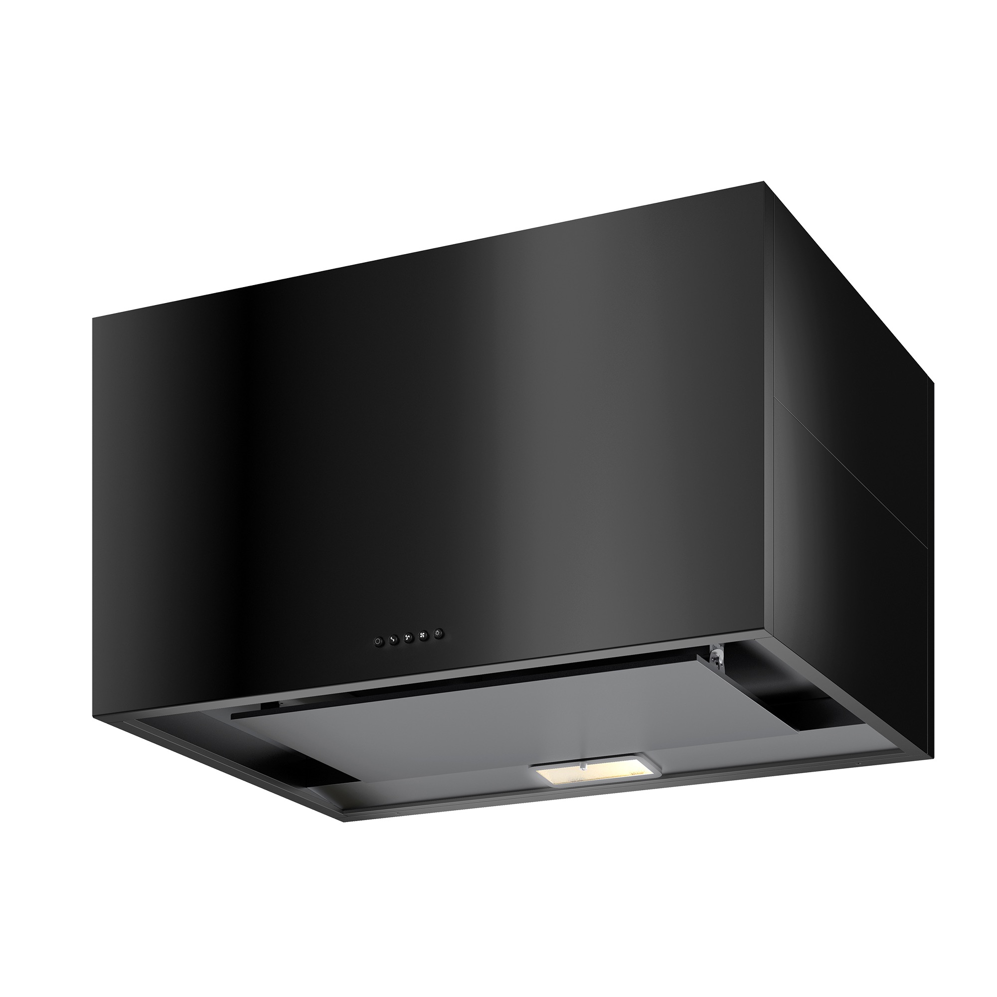 キッチンのレイアウトをすっきりと見せたい方におすすめのキューブ型のレンジフードです。アイランドキッチンなどで、宙に浮かぶようにレンジフードを設置したい時でも、余計な主張をせず、空間に馴染みます。