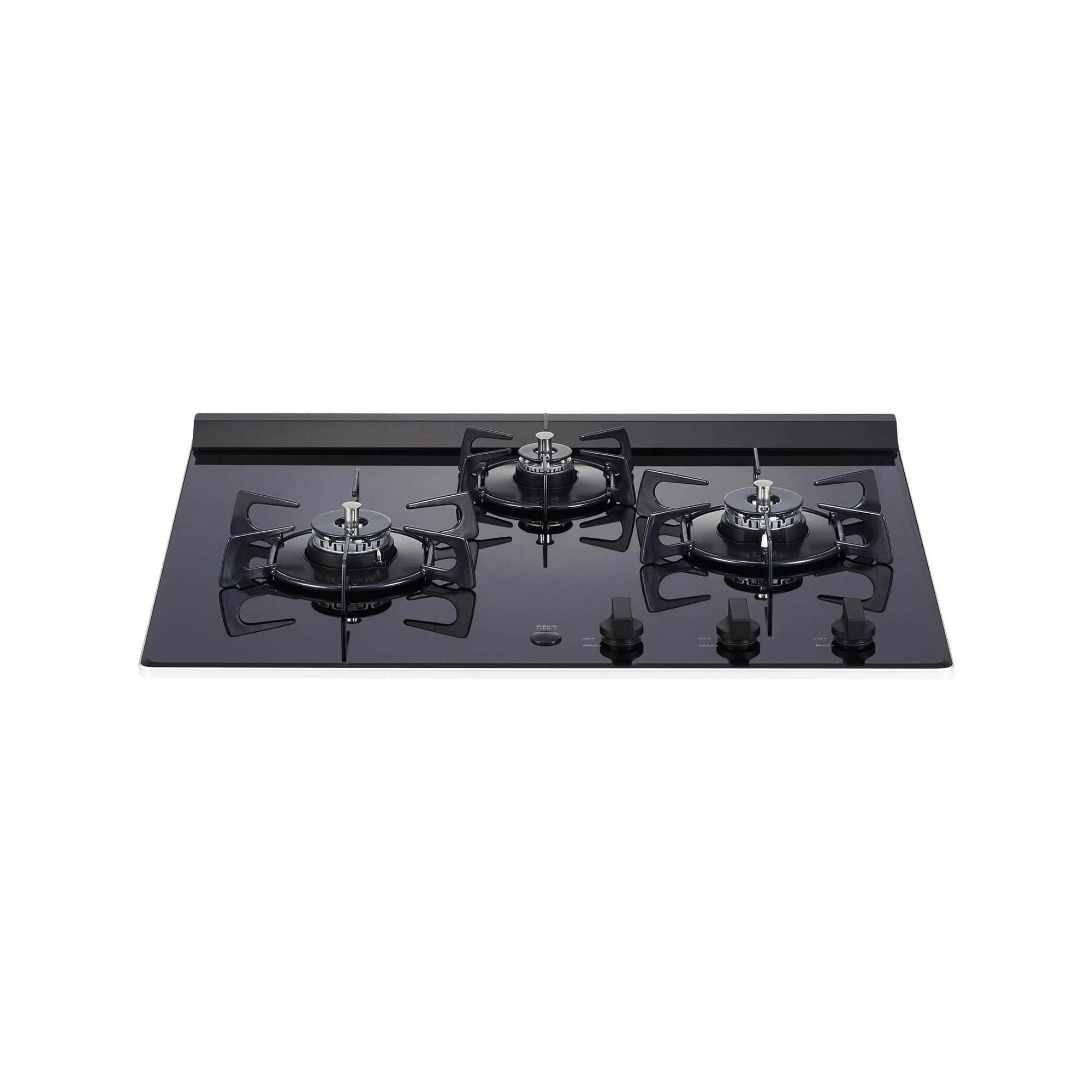 システムキッチンに適した3口タイプのグリルレスガスコンロです。トップ面がフラットな黒いガラス製でできており、このシンプルなデザインでお手入れしやすいのが特徴。