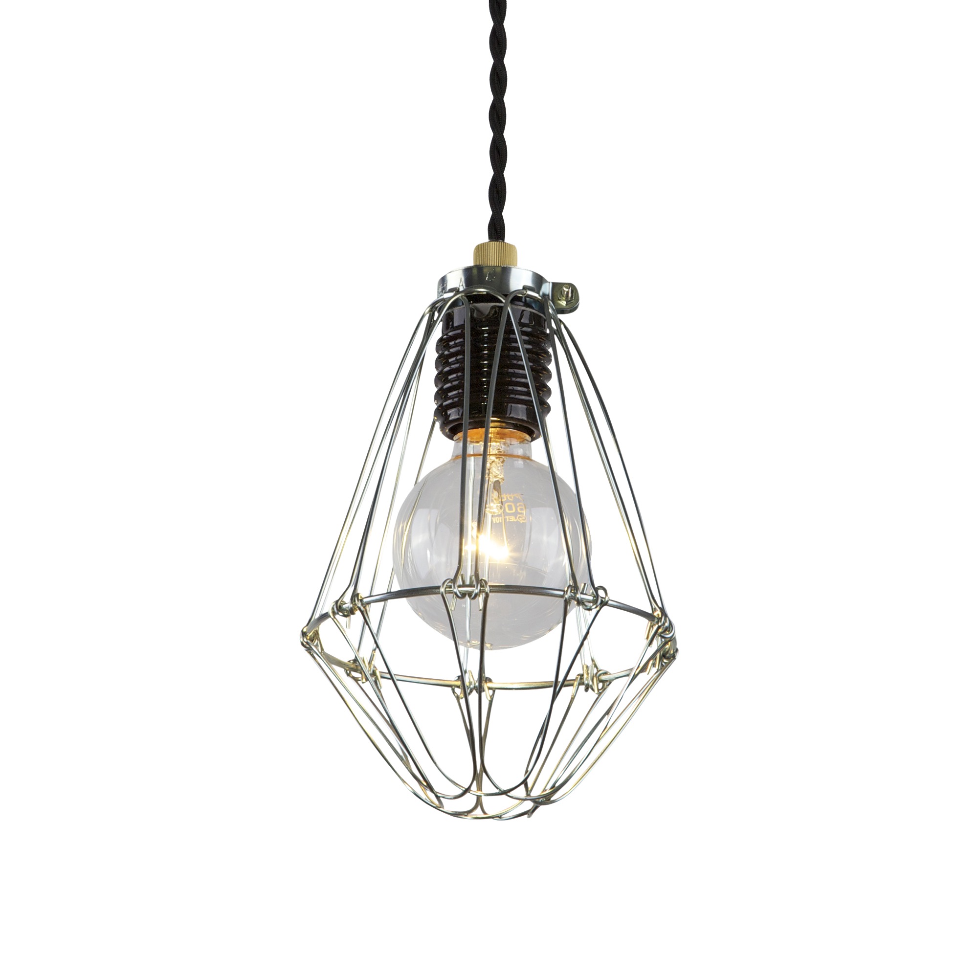 工事現場で、資材運搬などの作業中に電球が破損して、怪我や事故に及ぶケースが多かった時代に生まれたこの「電球ガード」。室内でガードが必要かと言われれば、電球が割れる心配なんてほとんどないのですが、電球を囲むワイヤーの骨組み感が、室内照明としてはちょっと珍しく、インダストリー好きの心をそそります。
