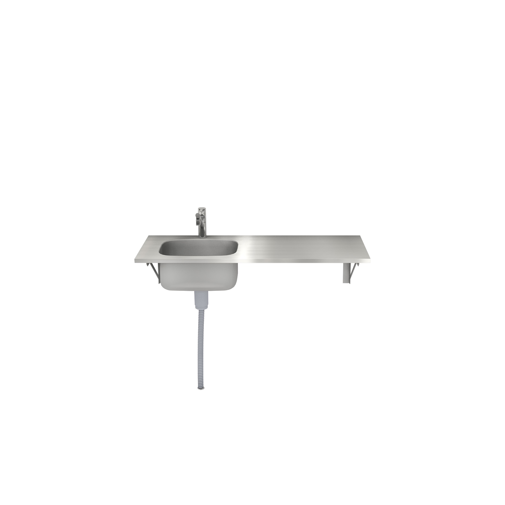 厚さT16mmの場合は、天板がたわむ可能性があるため、壁付けブラケットでの設置はNGです。天板下部にキャビネットを設置するなど、下から面で固定できる計画でのみお選びください。厚さT22mmの場合は、別売りの壁付けブラケットでも設置可能です。