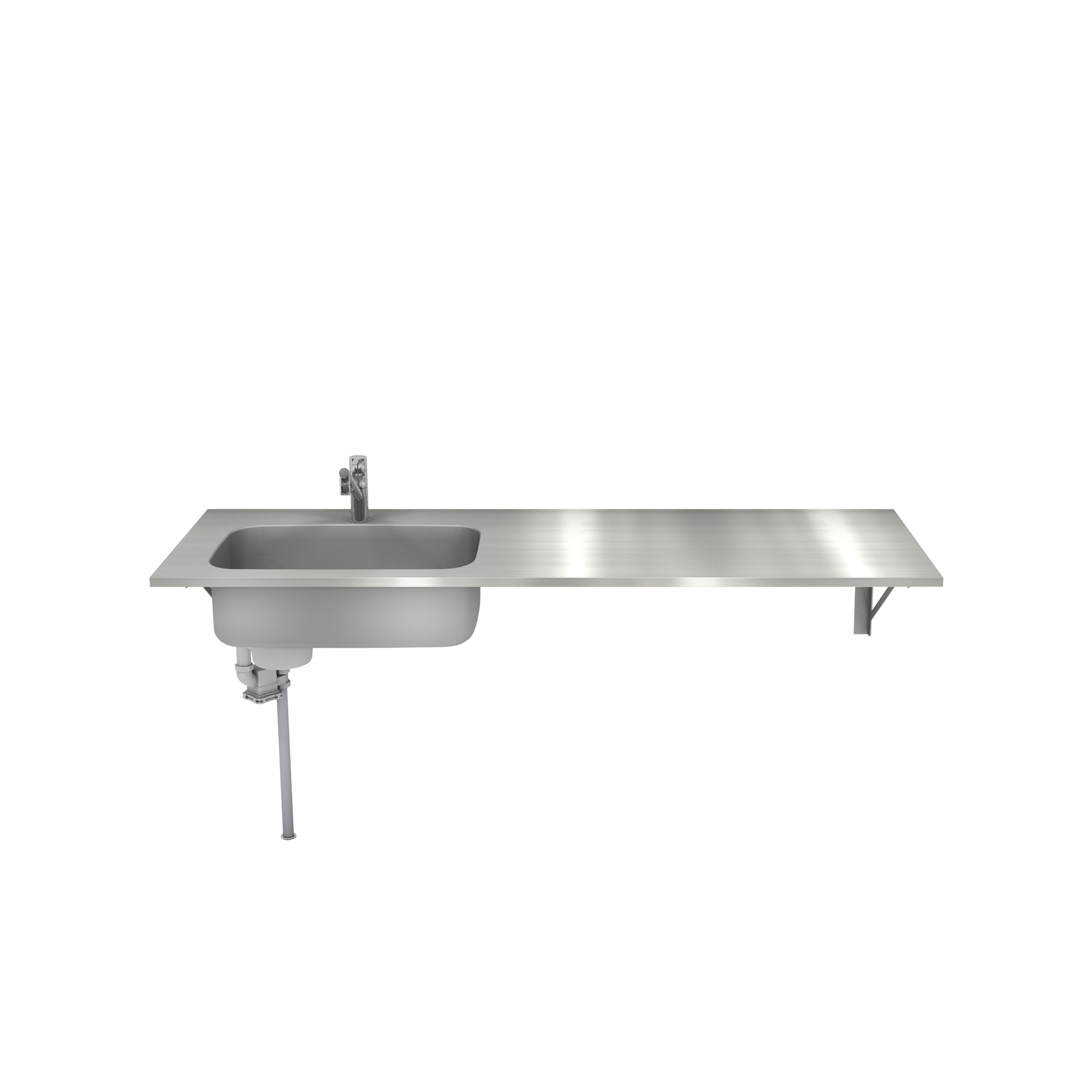 ステンレス製の「壁付けブラケット」を別売りしています。ブラケットの奥行きは550mmですので、天板がT22mmで奥行き560〜650mmの間であればブラケットでの設置が可能です。
