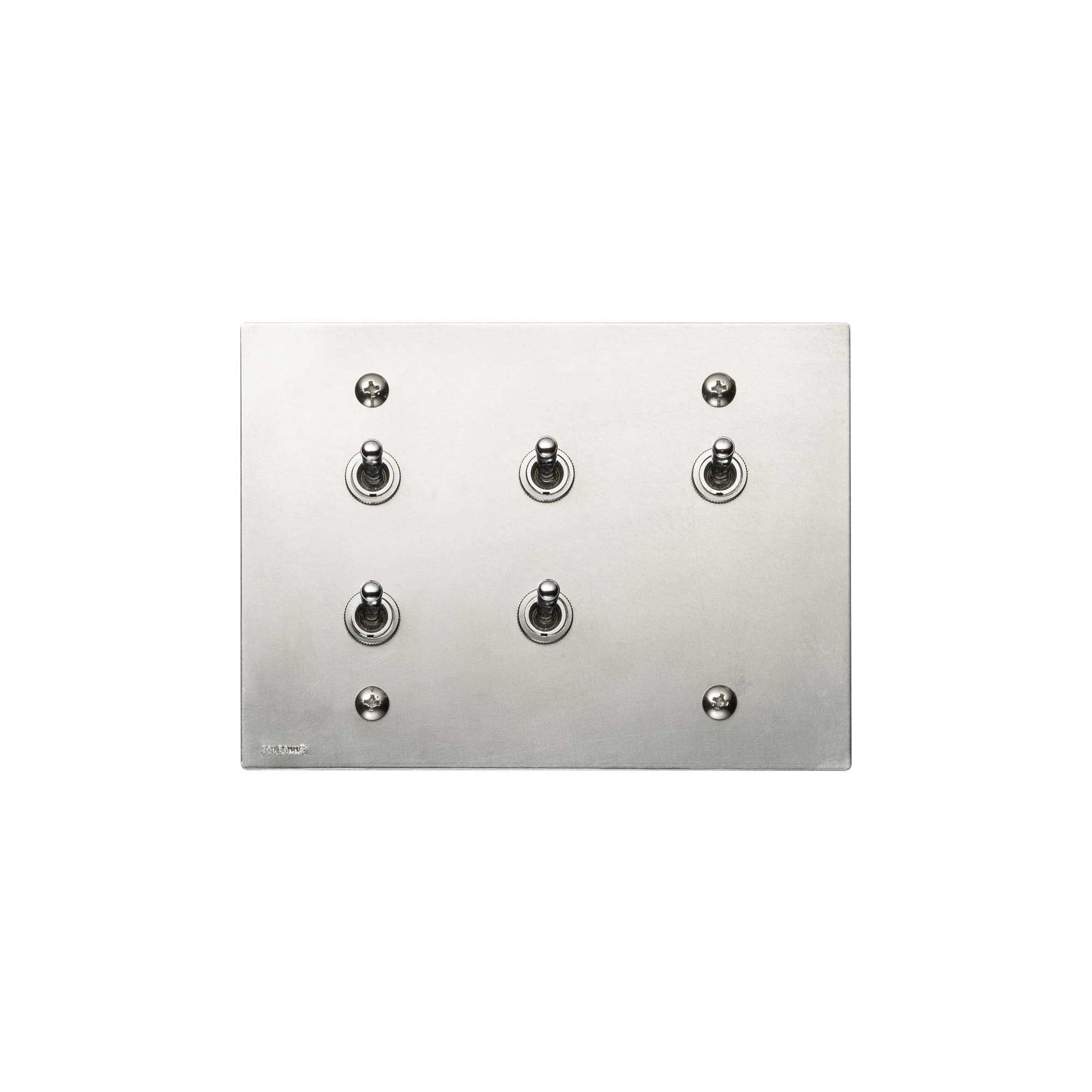 こちらはちょっと珍しい、少し大きめな横長のプレートに5つのスイッチが並んだタイプ。この数のトグルスイッチが並ぶと存在感は言うまでもなし。