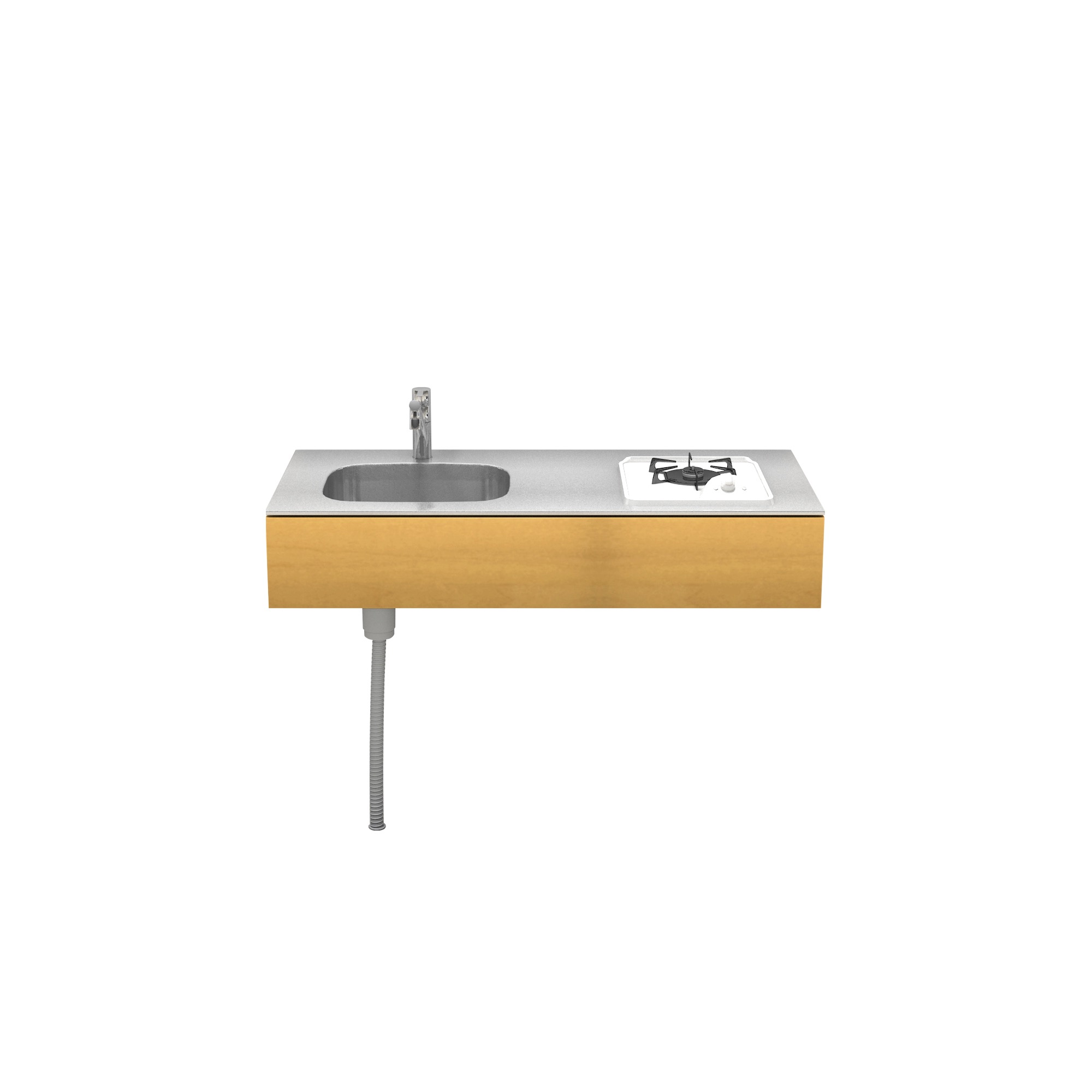 | 素材 | ステンレス(天板・シンク) バーチ合板+小口テープ貼り(面材表面) 低圧メラミン化粧板 / ホワイト(面材裏面・内部キャビネット) |