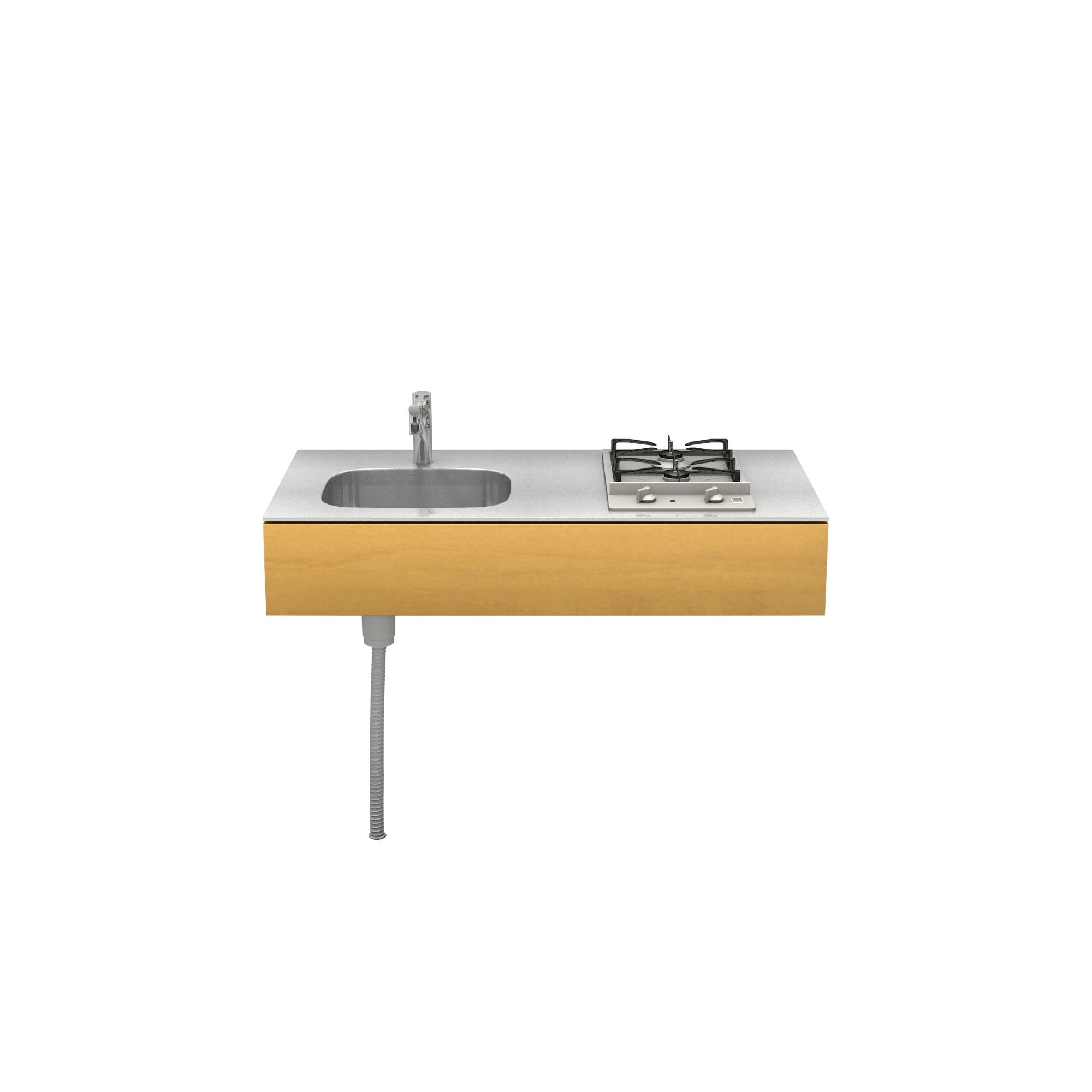 | 素材 | ステンレス(天板・シンク) バーチ合板+小口テープ貼り(面材表面) 低圧メラミン化粧板 / ホワイト(面材裏面・内部キャビネット) |