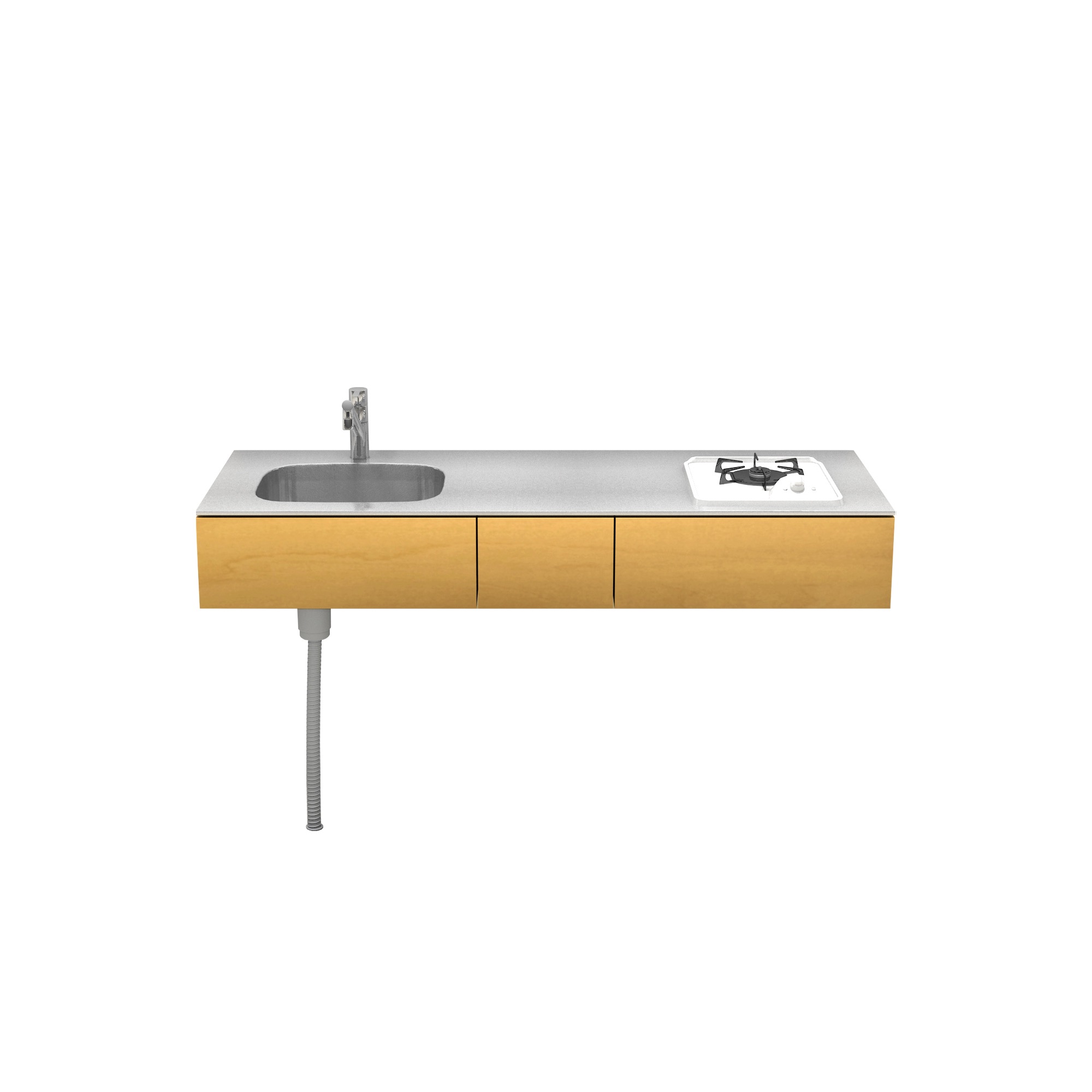 | 素材 | ステンレス(天板・シンク) バーチ合板+小口テープ貼り(面材表面) 低圧メラミン化粧板 / ホワイト(面材裏面・内部キャビネット) |