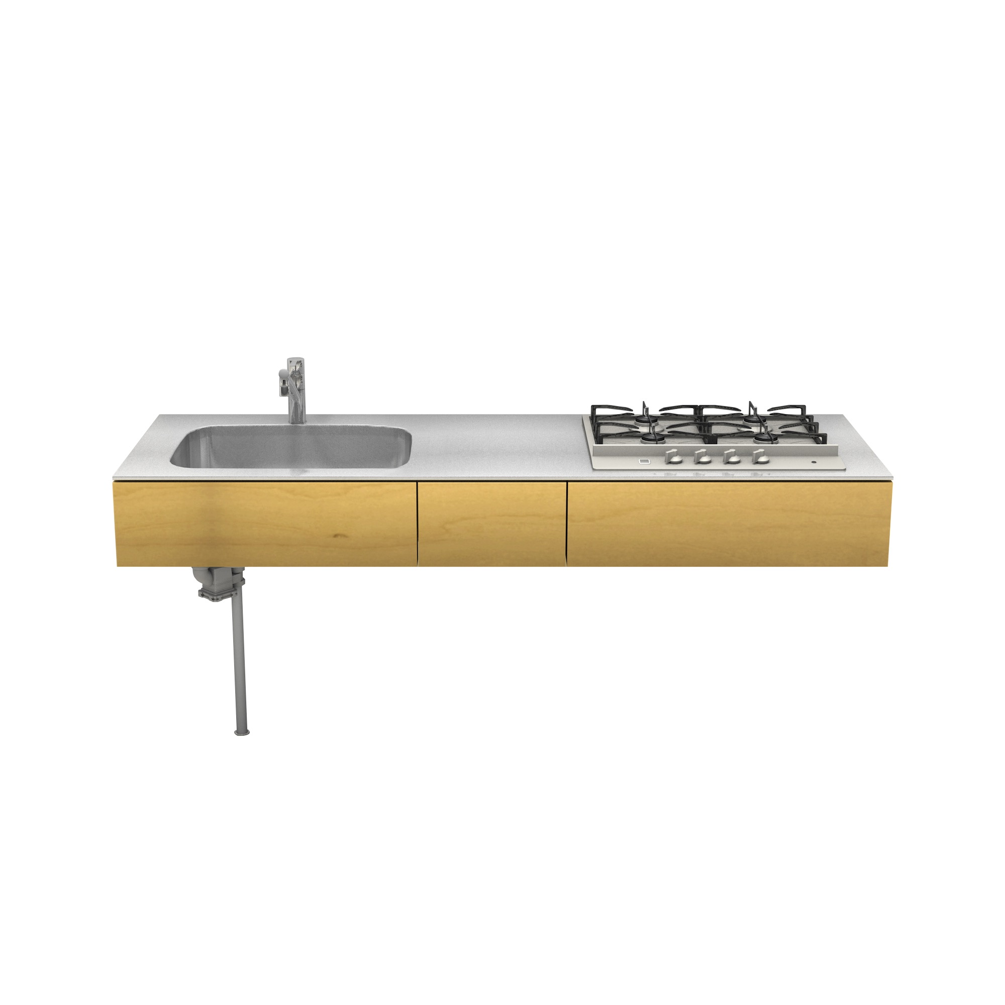 | 素材 | ステンレス(天板・シンク) バーチ合板+小口テープ貼り(面材表面) 低圧メラミン化粧板 / ホワイト(面材裏面・内部キャビネット) |