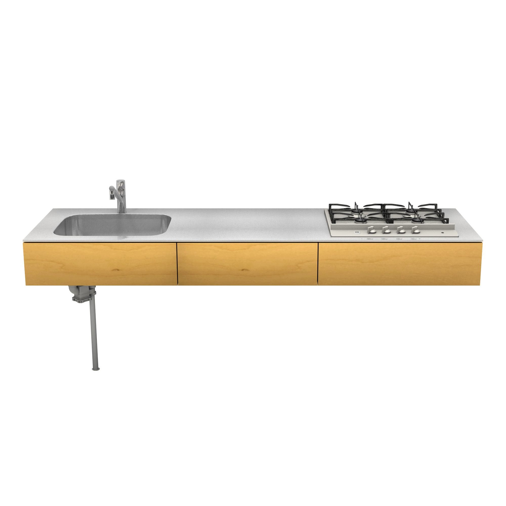 | 素材 | ステンレス(天板・シンク) バーチ合板+小口テープ貼り(面材表面) 低圧メラミン化粧板 / ホワイト(面材裏面・内部キャビネット) |