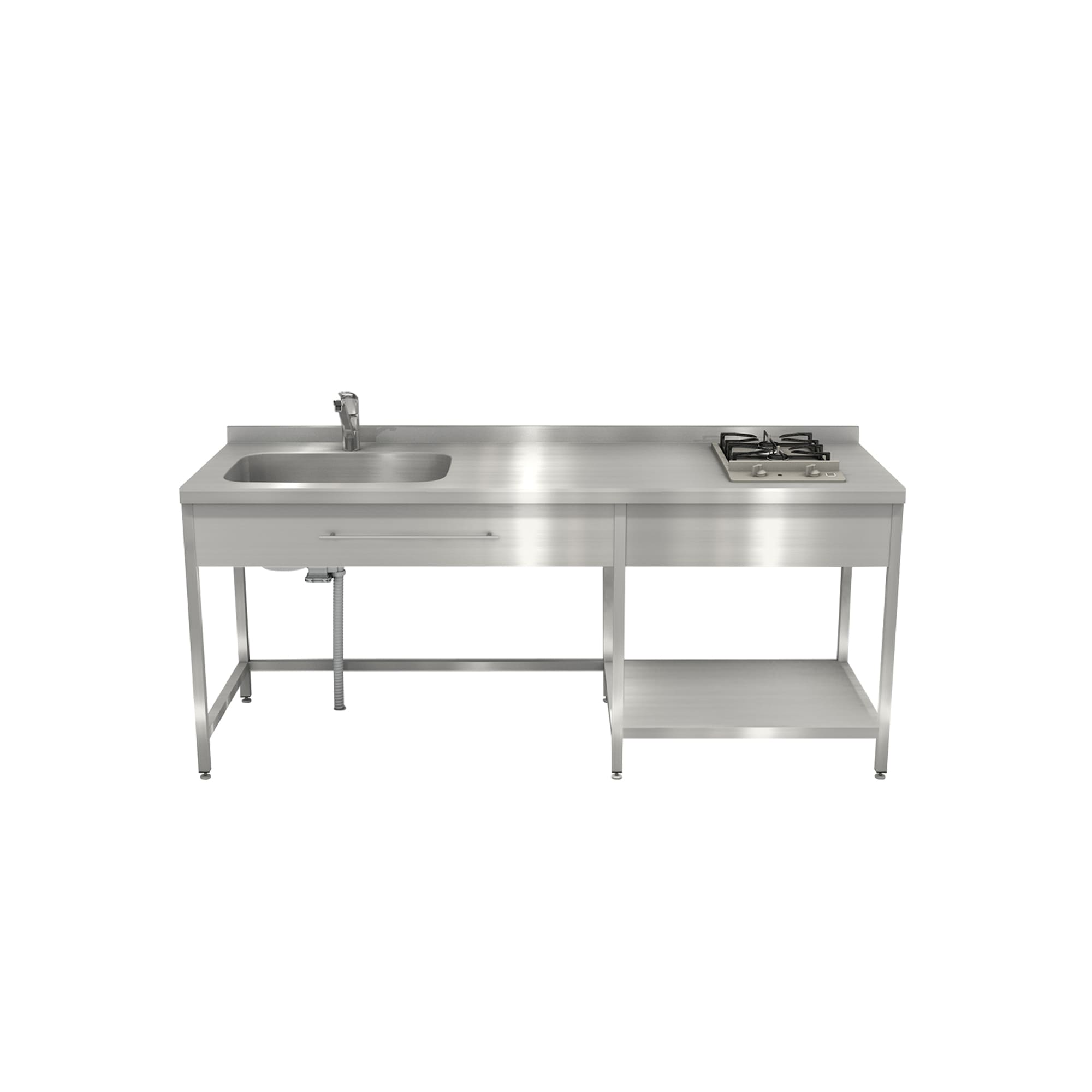 シンクのサイズや位置変更、また、シンク「不要」といった対応はできません。
