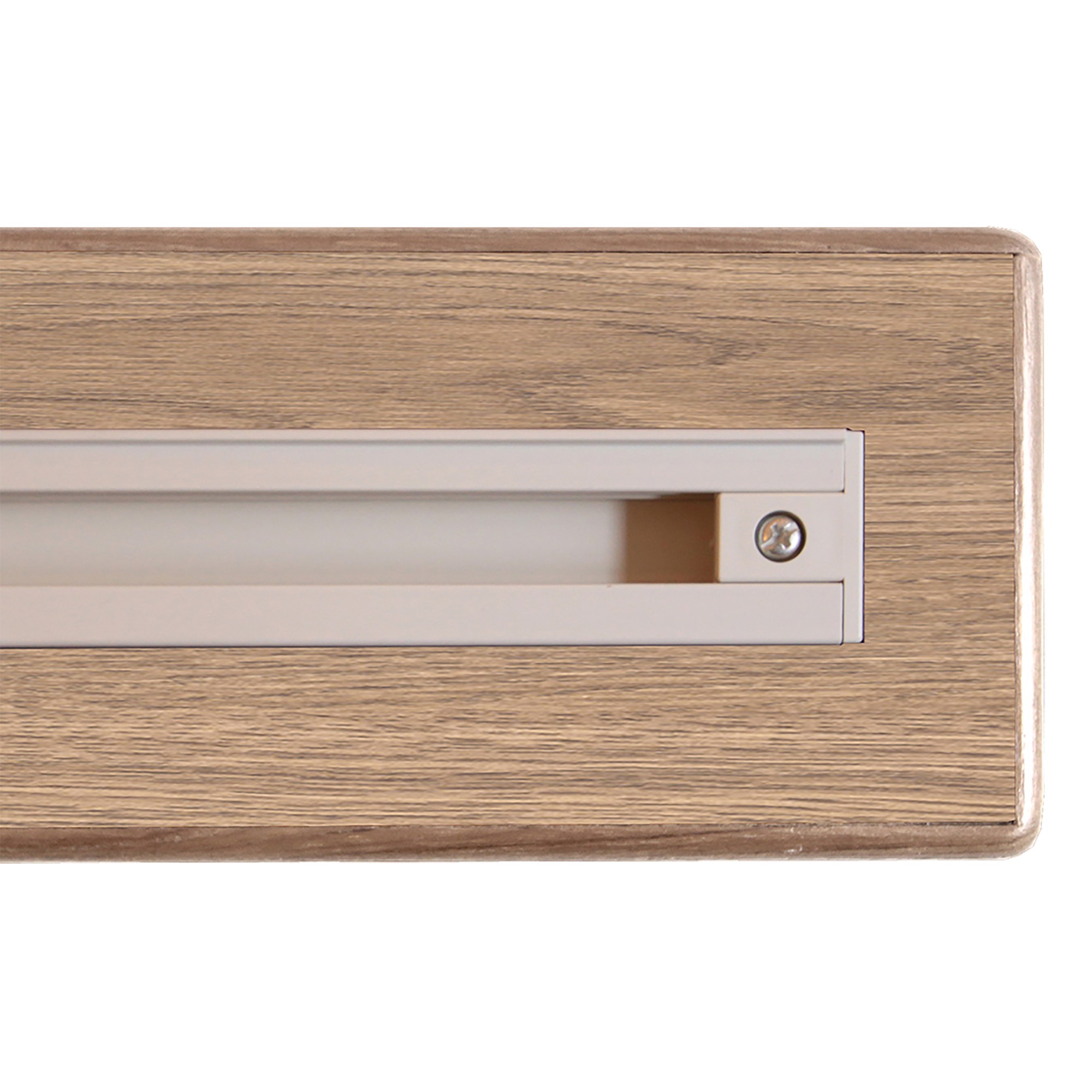 溝が掘られた木製のカバーにレールをはめ込んで使います。ライティングレールの機能はそのままに、ちょっとそっけなかったレールが、美しく味わいのある器具に生まれ変わるんです。