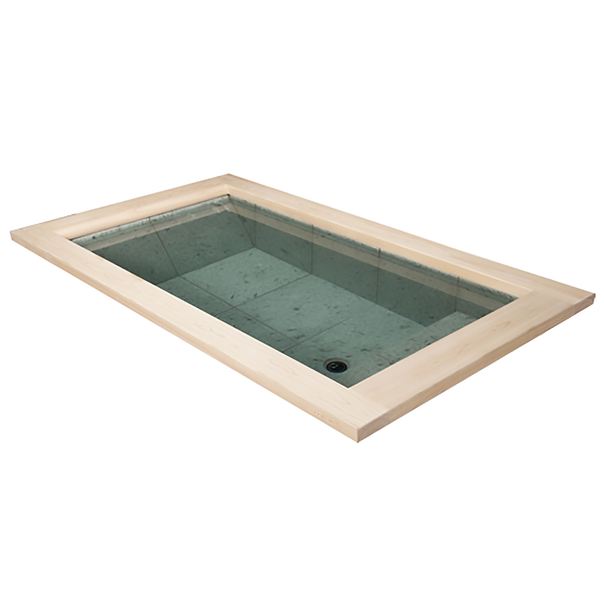 FRPを下地材として使い防水性を担保しつつ、国産の十和田石で仕上げていますので、きゅっと吸い付くような足触りや水に濡れて色づいた石の色が、目と素肌にやさしく、リラックスした時間を彩ってくれるでしょう。