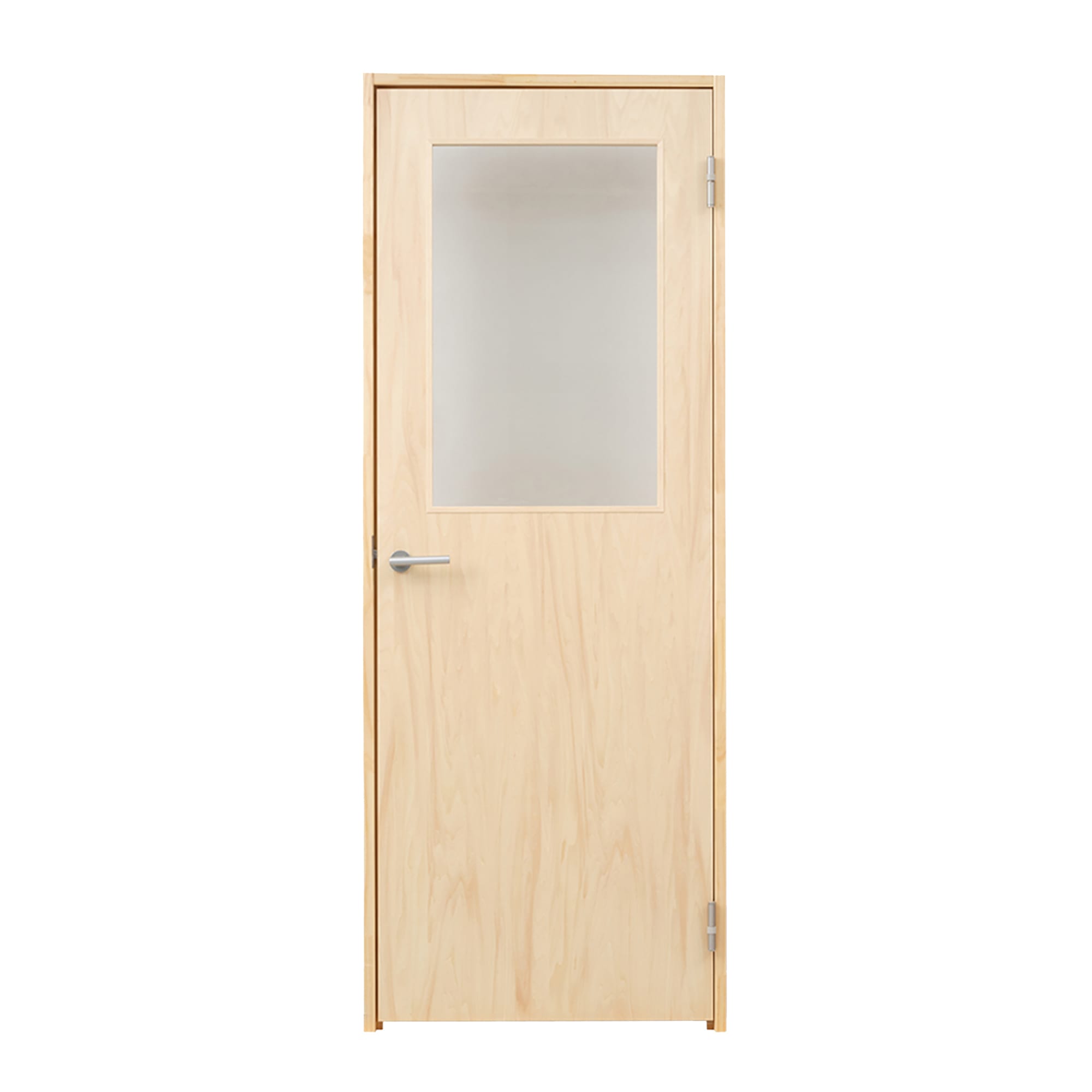 | 素材 | シナ合板(ドア)、パイン集成材(枠) クリアガラス(非強化ガラス4mm、飛散防止フィルムあり) |