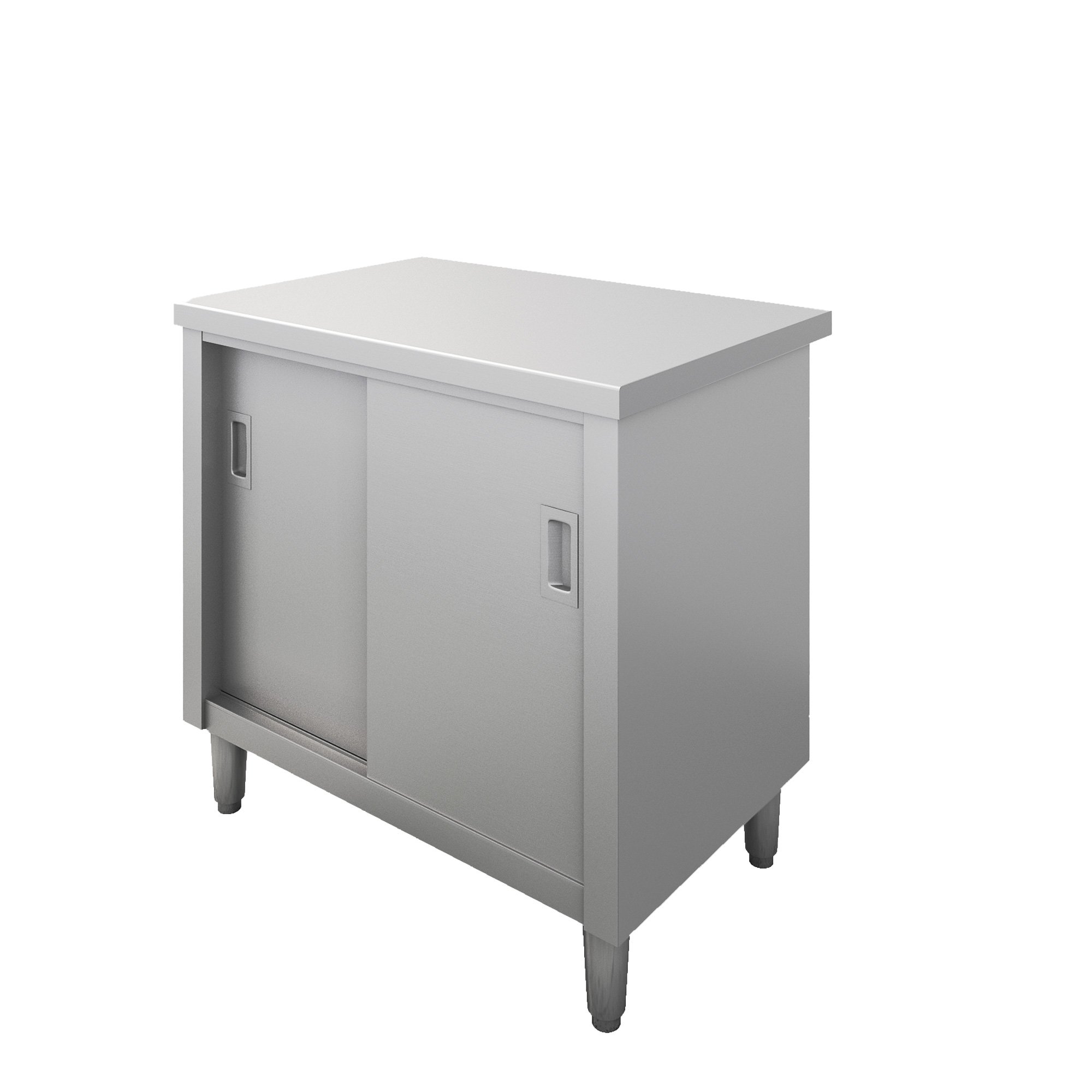 | 素材 | 天板・引き違い戸・可動棚・本体:ステンレス(SUS430) 天板補強:ボンデ鋼板 引き戸取手・可動棚・本体・アジャスター:ステンレス(SUS304) |