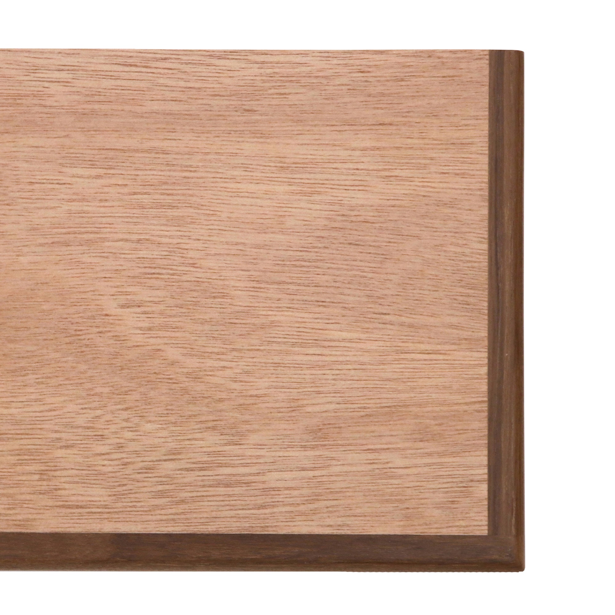 ラワン合板の正面と左右の木口3辺に20mm厚の無垢材を貼り付けた棚板です。こちらは奥行きが285mmのタイプ。
