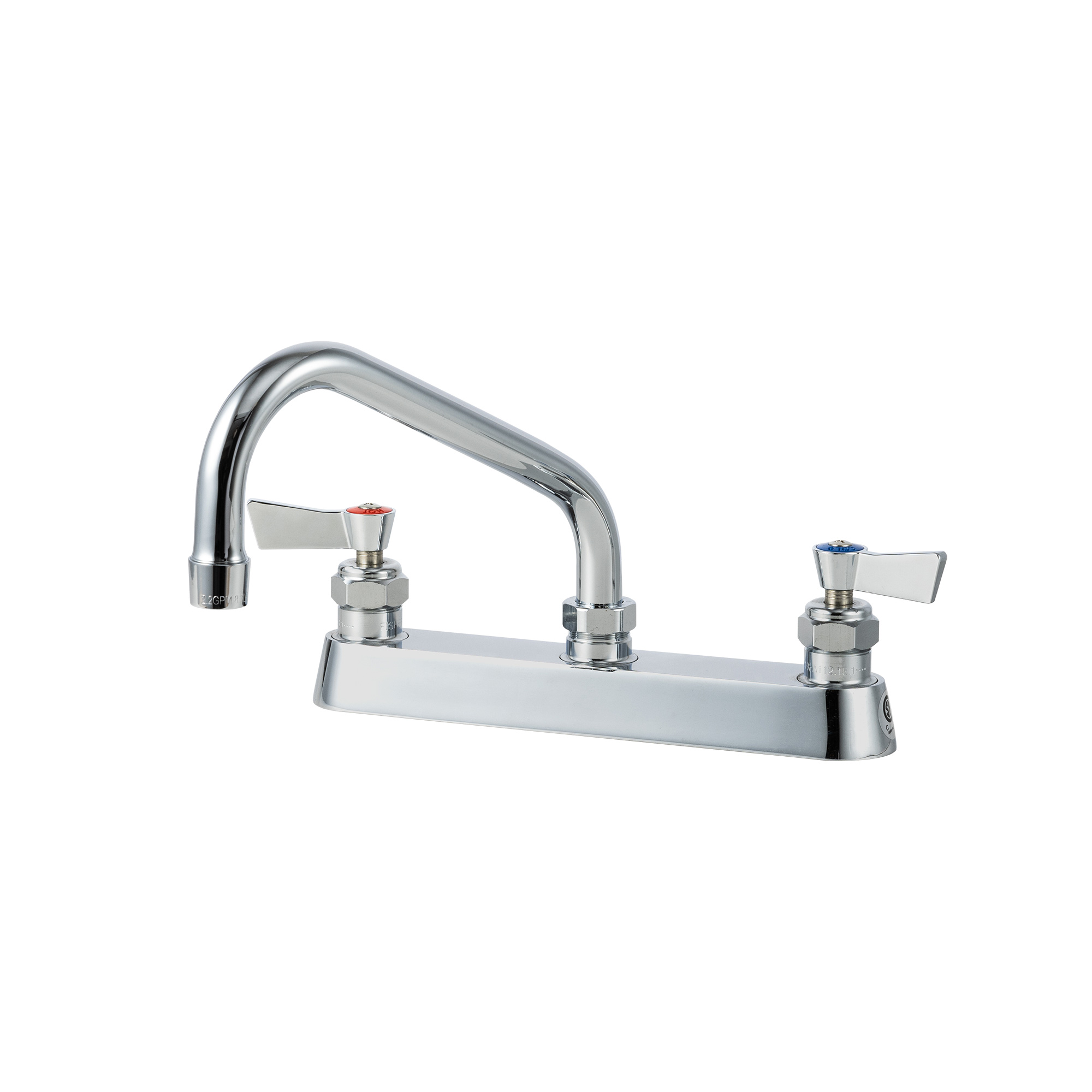 FISHER(フィッシャー)社というアメリカの厨房用水栓メーカーが製造している台付け型のツインレバー混合栓です。