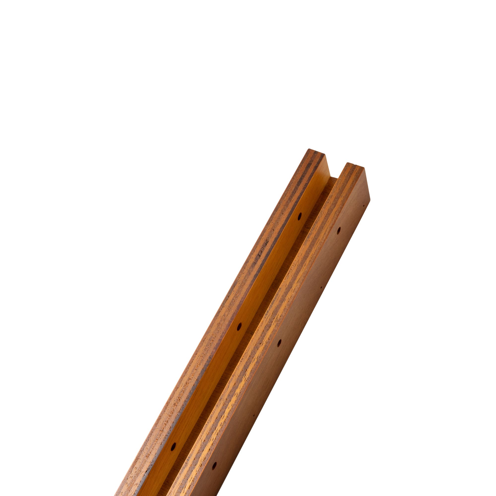 こちらの棚柱は、正面から見たとき合板の積層が壁面に心地よいリズムを演出してくれます。縦に2本つなげて、高さ1.8mの壁一面を飾り棚にしたり、ちょっとしたデスクスペースを作ってみたり、使う本数によってボリュームを調整しながら、自分好みの壁にしつらえてみてはいかがでしょうか。