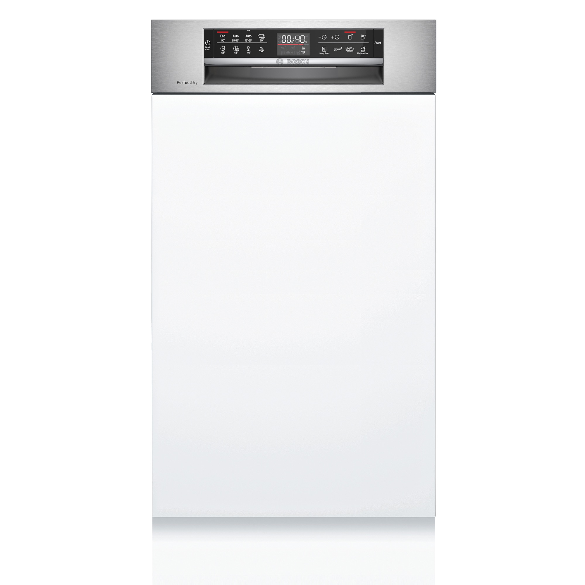 食器や鍋をまとめて洗浄できる大容量。コントロールパネルが正面にあるタイプです。