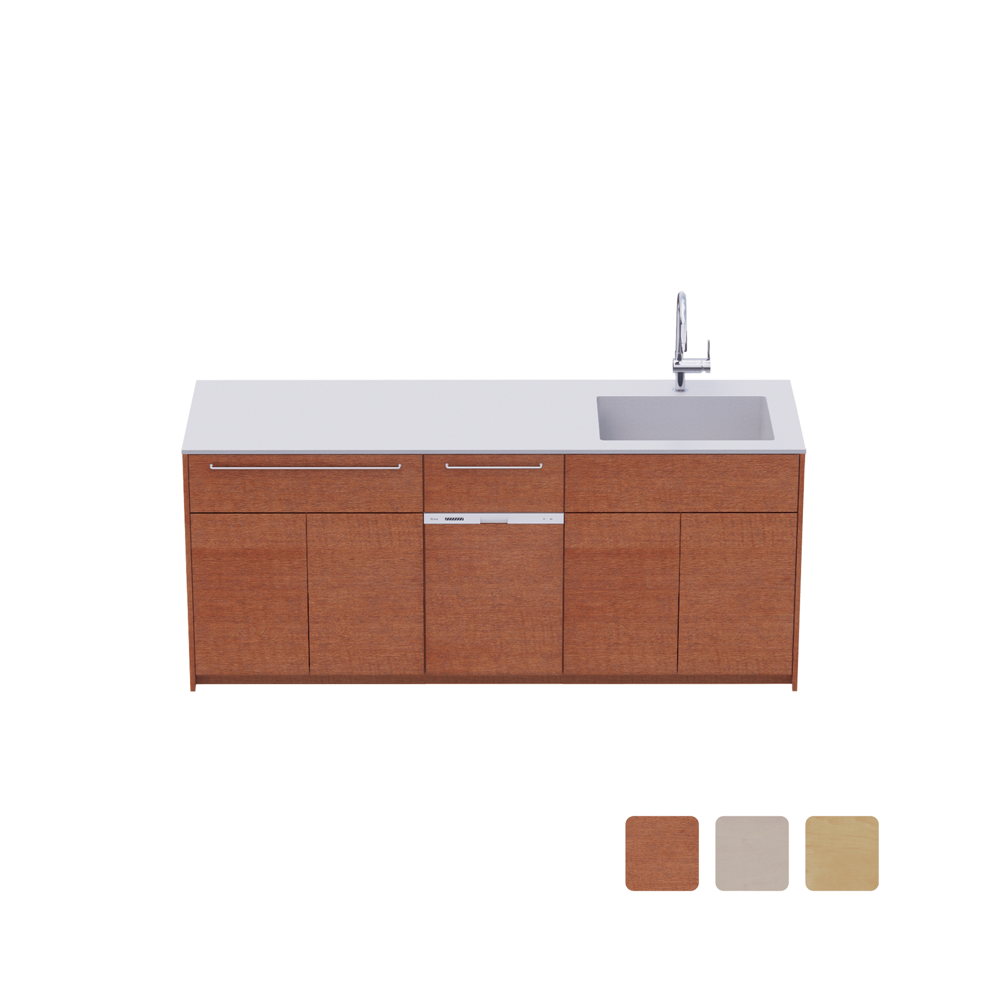 | 仕上 | 天板:バイブレーション仕上 面材(ラワン・バーチ):オイル塗装+水性ウレタン塗装、小口テープ仕上 面材(シナ):水性ウレタン塗装、小口テープ仕上 把手:酸洗い仕上 ※ 把手ありを選択した場合 |