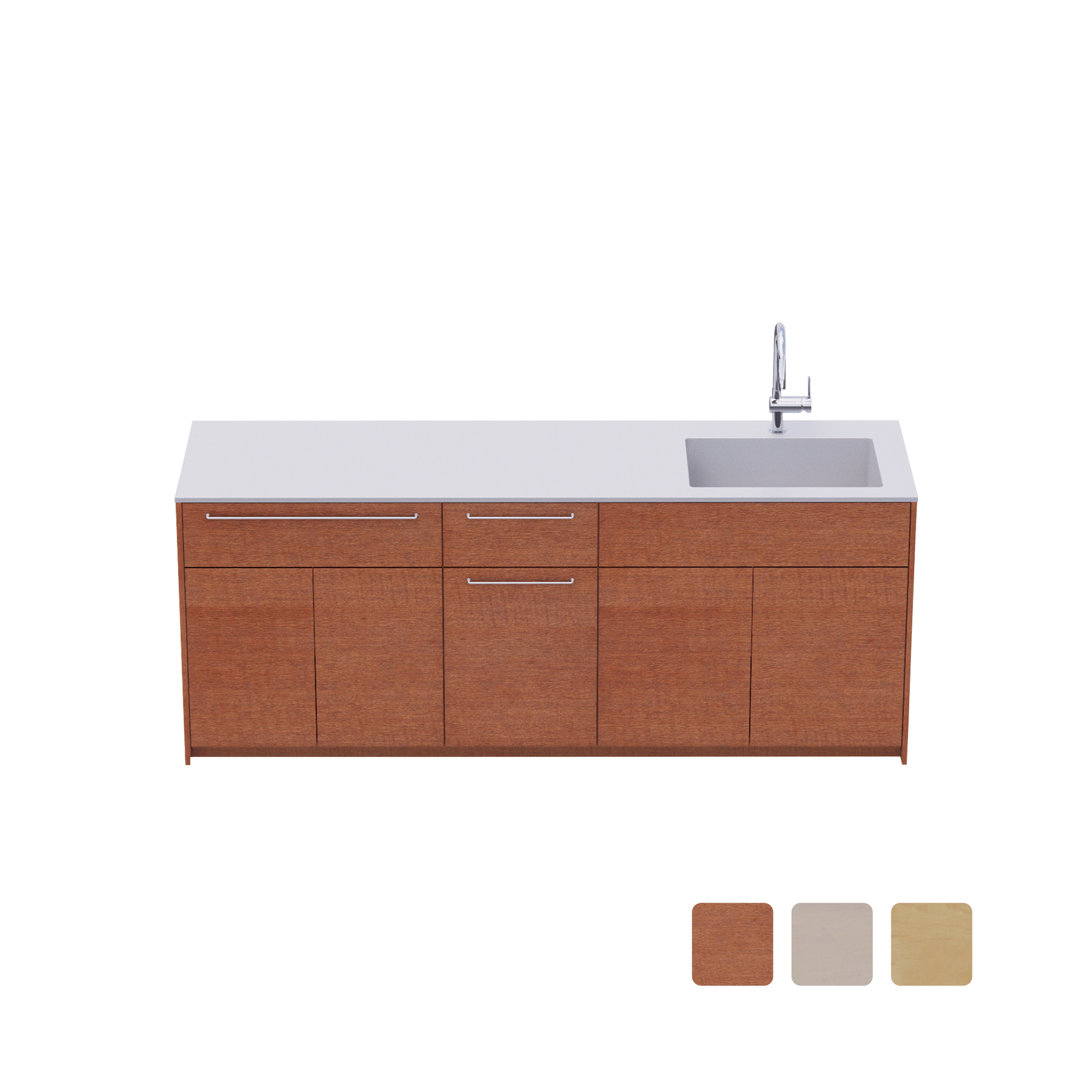 | 仕上 | 天板:バイブレーション仕上 面材(ラワン・バーチ):オイル塗装+水性ウレタン塗装、小口テープ仕上 面材(シナ):水性ウレタン塗装、小口テープ仕上 把手:酸洗い仕上 ※ 把手ありを選択した場合 |