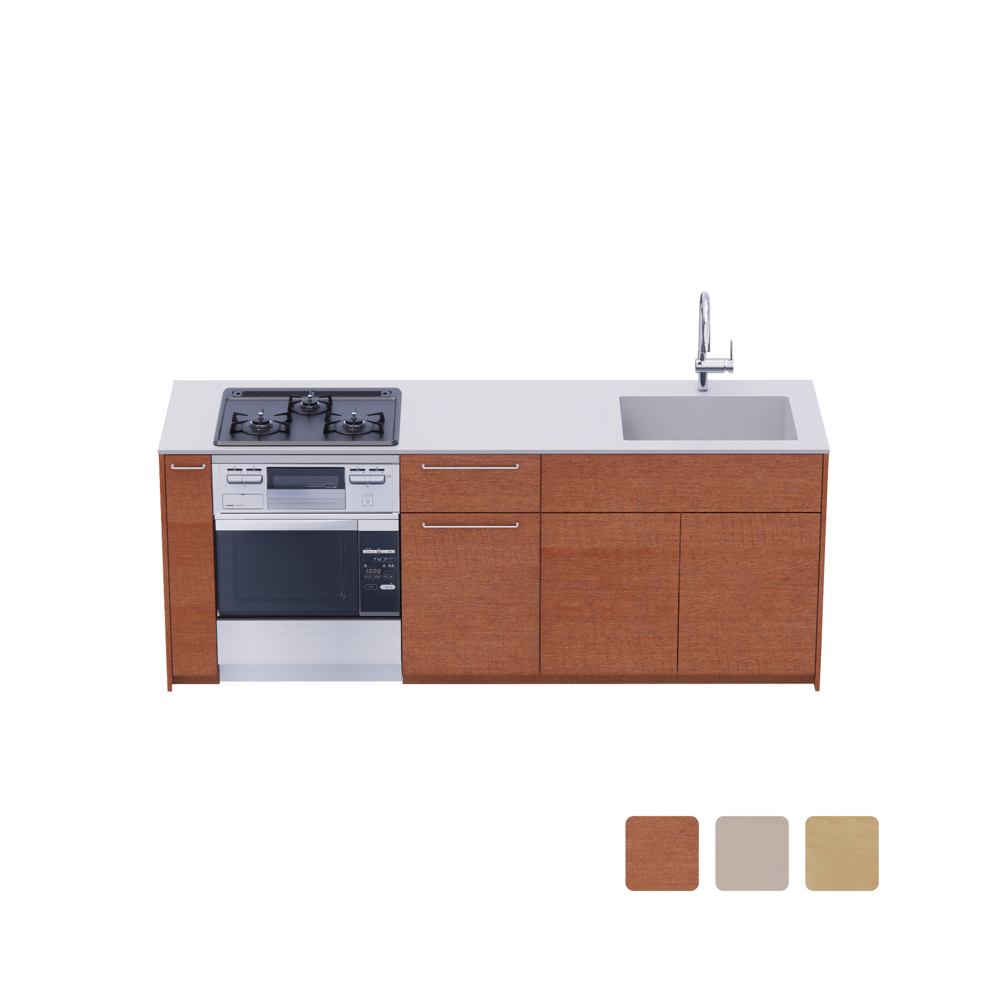 こちらは奥行き650mmの壁付け型で、幅は2140mmと2290mmの2種類から選べます。食洗機はなく、コンロとオーブンを設置できるタイプです。