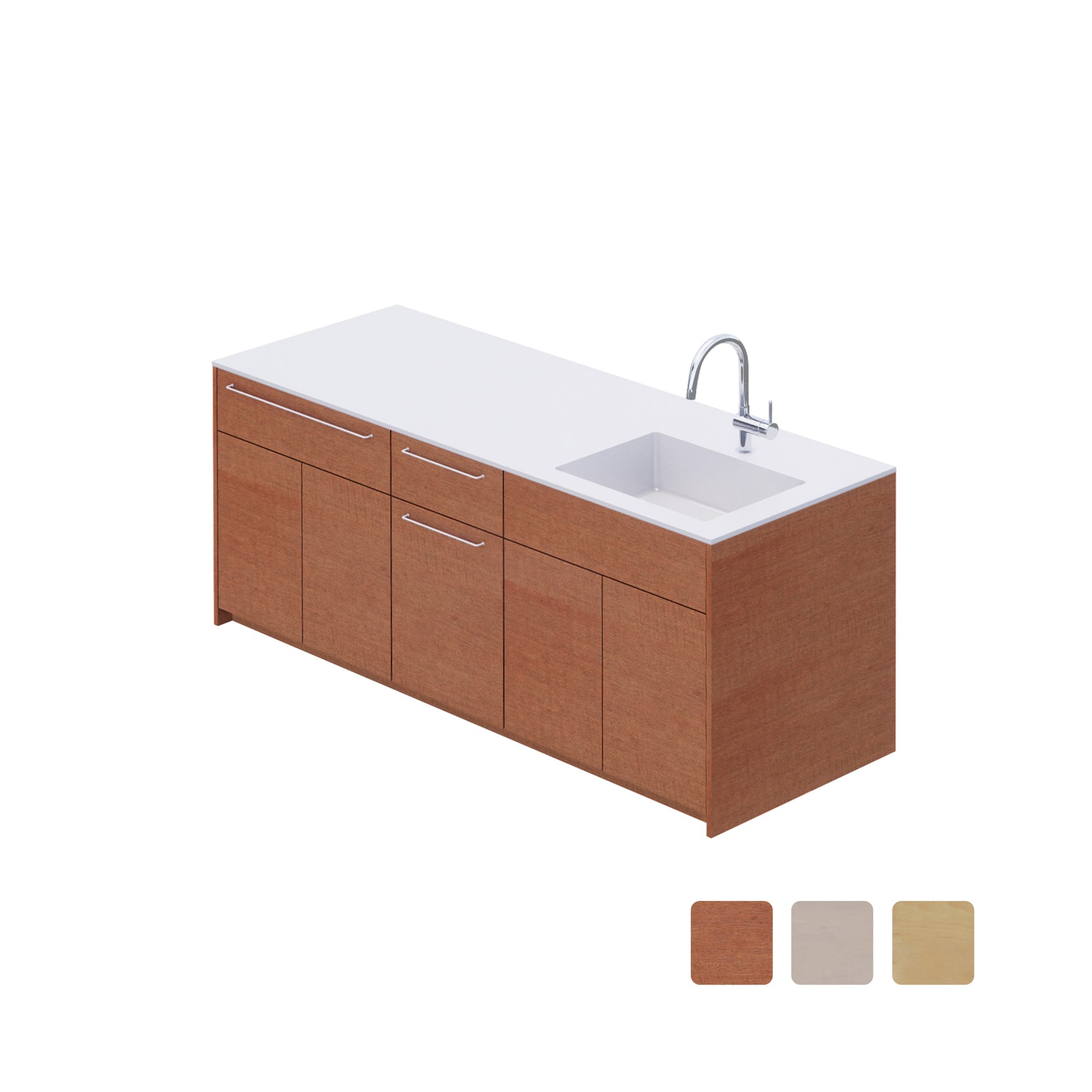 | 仕上 | 天板:バイブレーション仕上 面材(ラワン・バーチ):オイル塗装+水性ウレタン塗装、小口テープ仕上 面材(シナ):水性ウレタン塗装、小口テープ仕上 把手:酸洗い仕上 ※ 把手ありを選択した場合 |