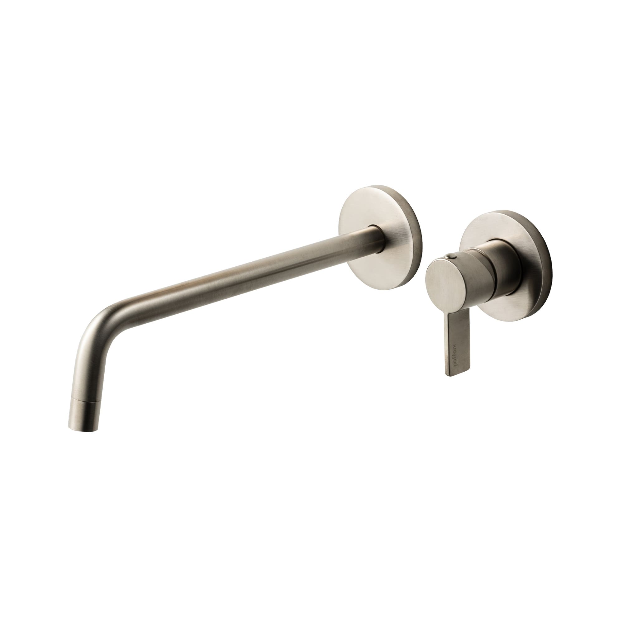 棒状のスパウトとレバーが丸い台座からそれぞれ出ている形は、洗面空間を特徴付けてくれます。シンプルな形状は、無地の壁やタイルの仕上げなど、様々な仕上げに合わせることができます。
