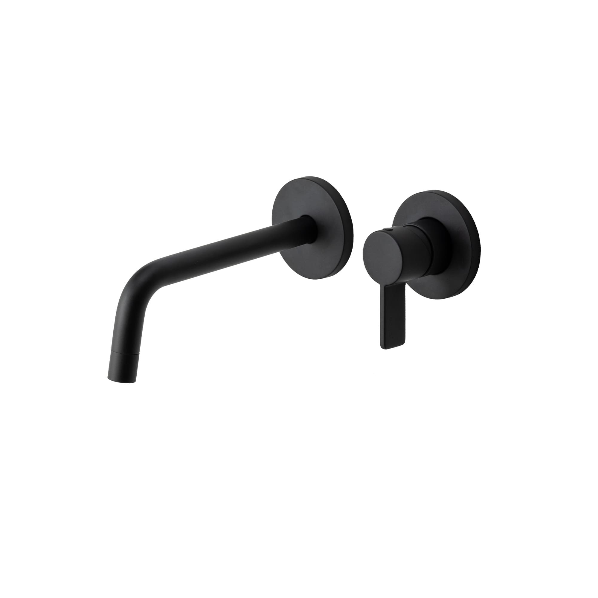 棒状のスパウトとレバーが丸い台座からそれぞれ出ている形は、洗面空間を特徴付けてくれます。シンプルな形状は、無地の壁やタイルの仕上げなど、様々な仕上げに合わせることができます。