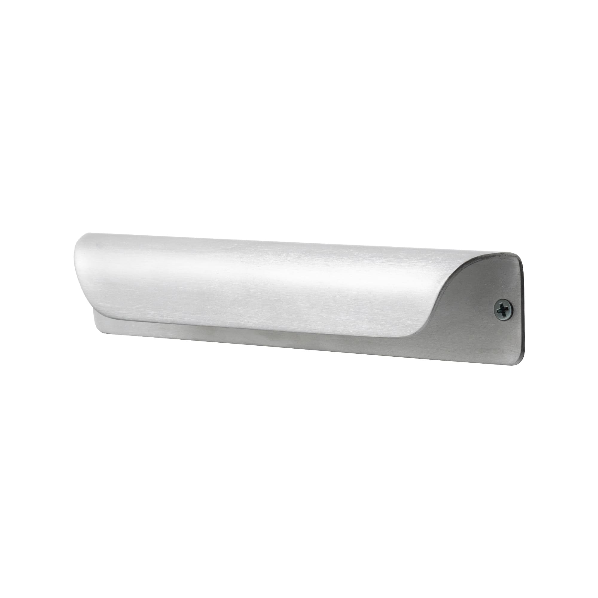 アルミの板をぐるっと曲げて出来た把手の金物。すっきりしすぎず、目立ちすぎず、そんな、あるようでなかった軽やかな存在感のある把手です。